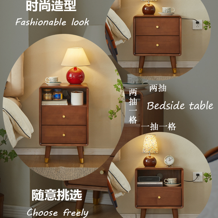 实木床头柜家用卧室2025新款 轻奢高级感现代简约小型床边收纳柜子