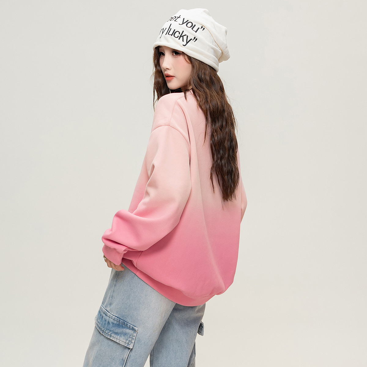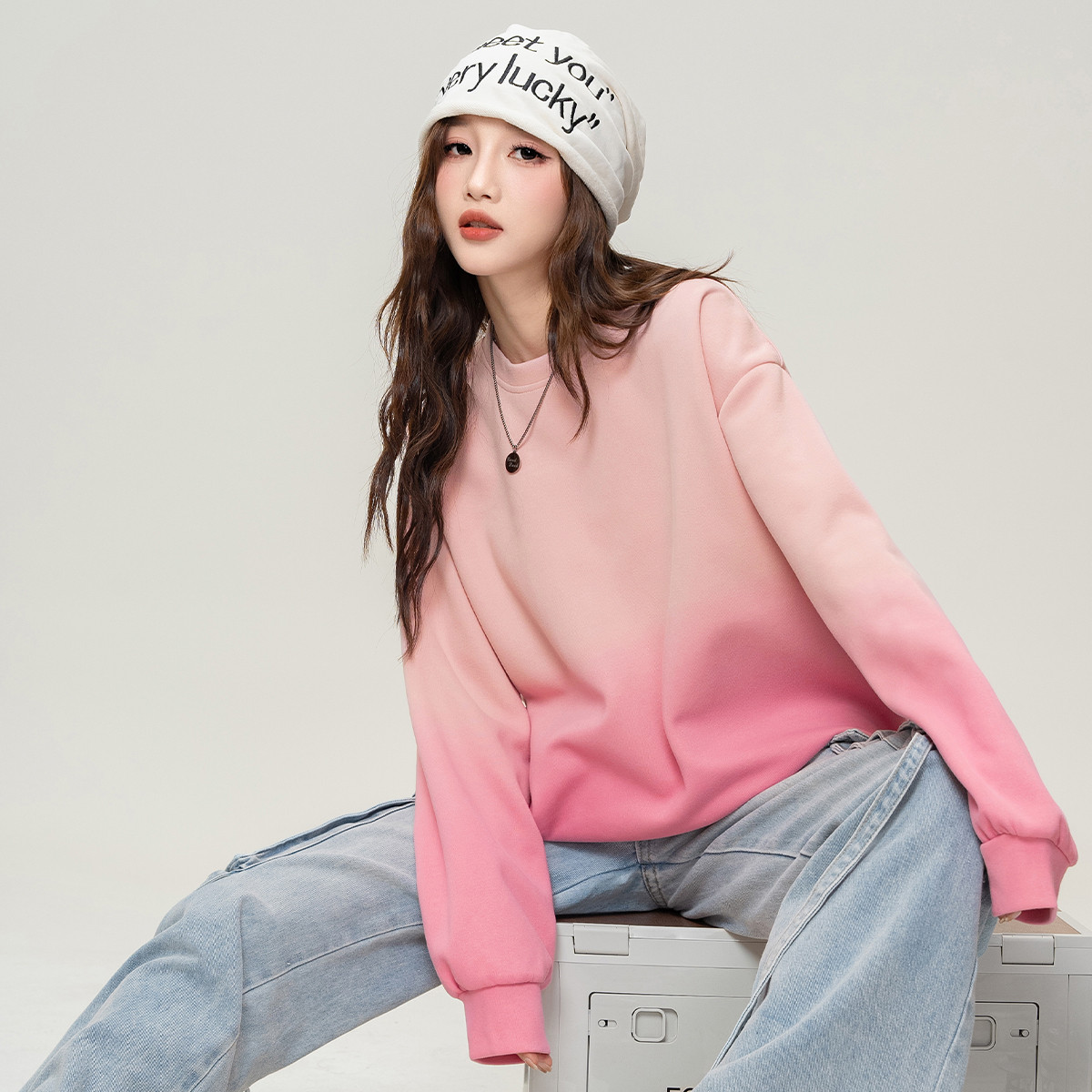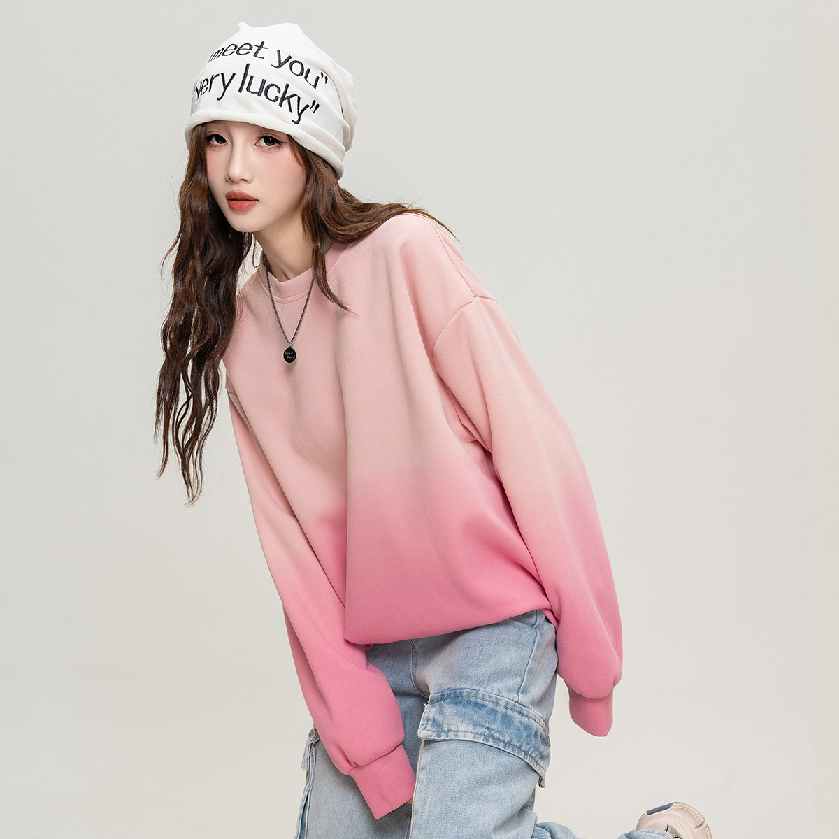 ILOVECHOC渐变色圆领卫衣女2025秋宽松休闲百搭长袖 上衣潮牌