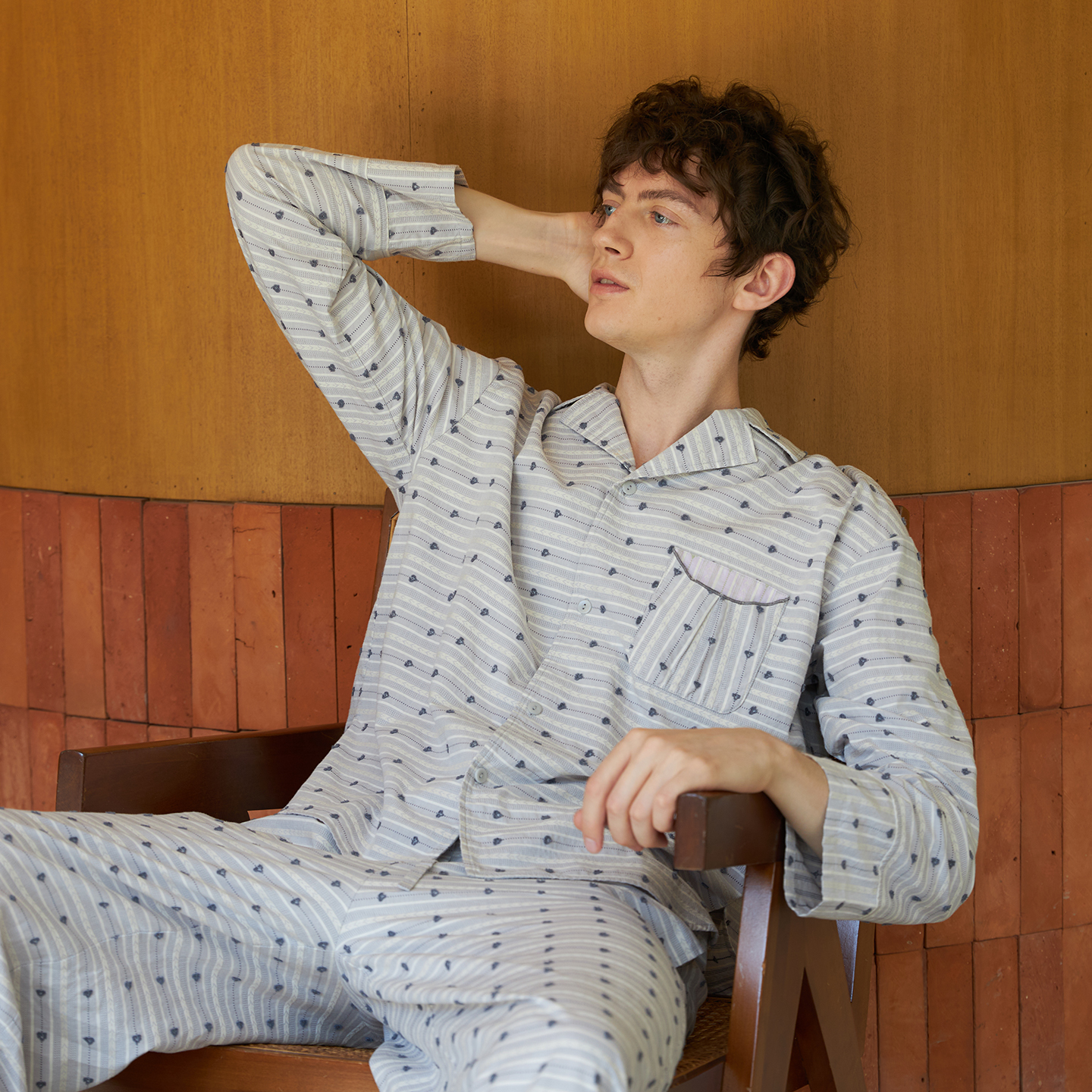 全棉时代睡衣男女士针织家居服情侣套装 7A抗菌除螨纯棉睡衣春秋季