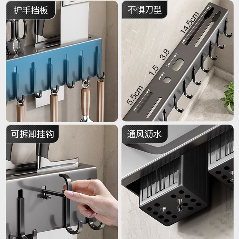 刀架置物架厨房家用壁挂式 多功能菜刀架筷子筒刀架一体刀具收纳架