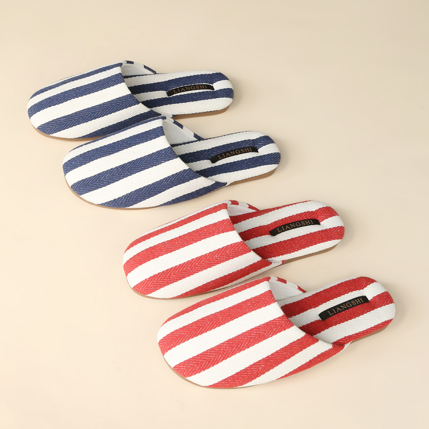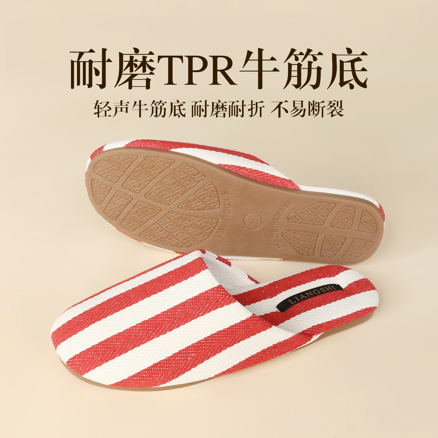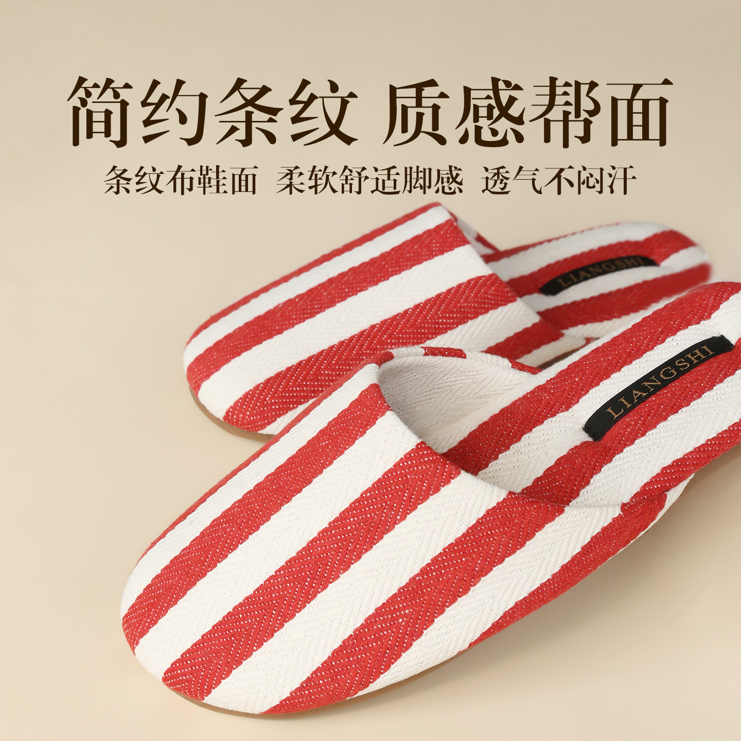 春秋室内家居防滑情侣牛筋底拖鞋 女2025新款 条纹布艺拖鞋 简约时尚