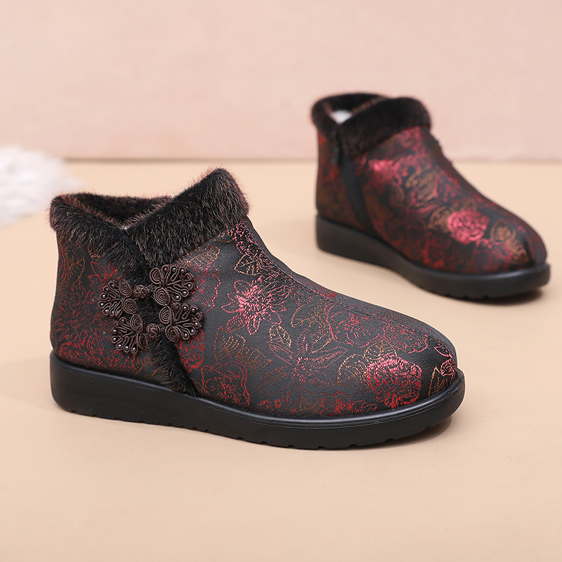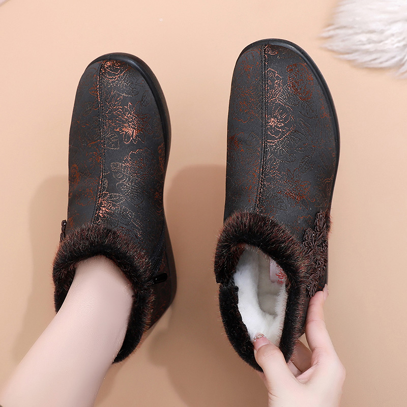 子防滑保暖老太太鞋 冬女加厚纯羊毛老人妈妈鞋 老北京布鞋 宝石布鞋