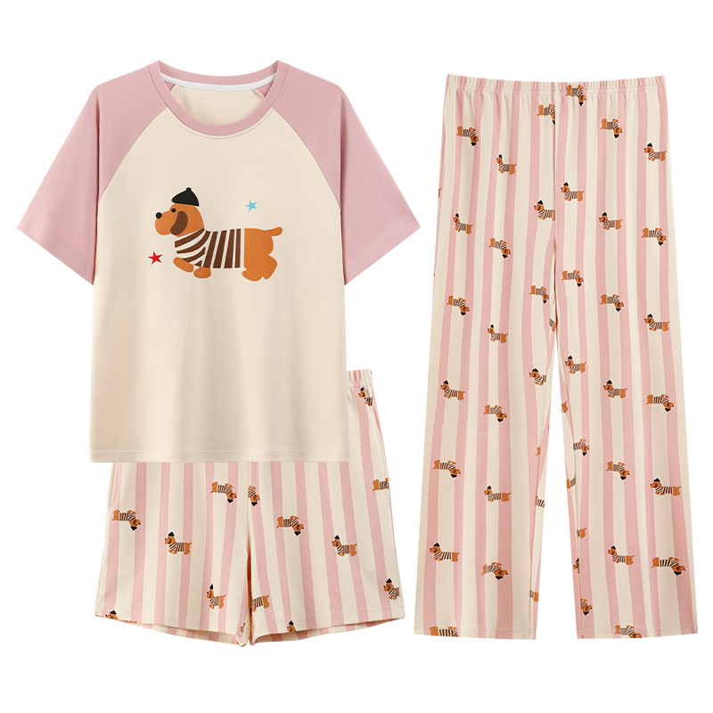 小狗系列条纹满印情侣家居服套装 Gukoo 果壳睡衣女春秋款