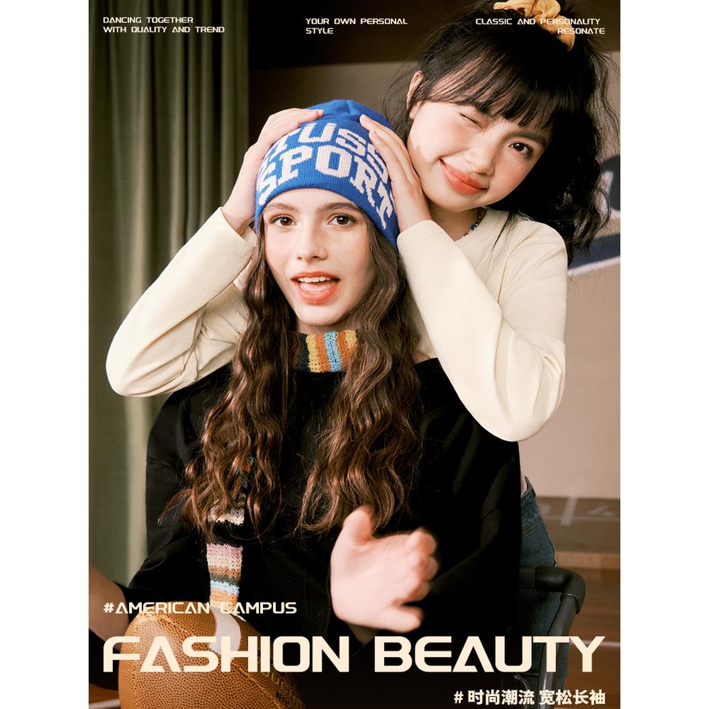 t恤儿童纯棉洋气拼接插肩打底衫 男女童长袖 2025年新款 Dickies童装