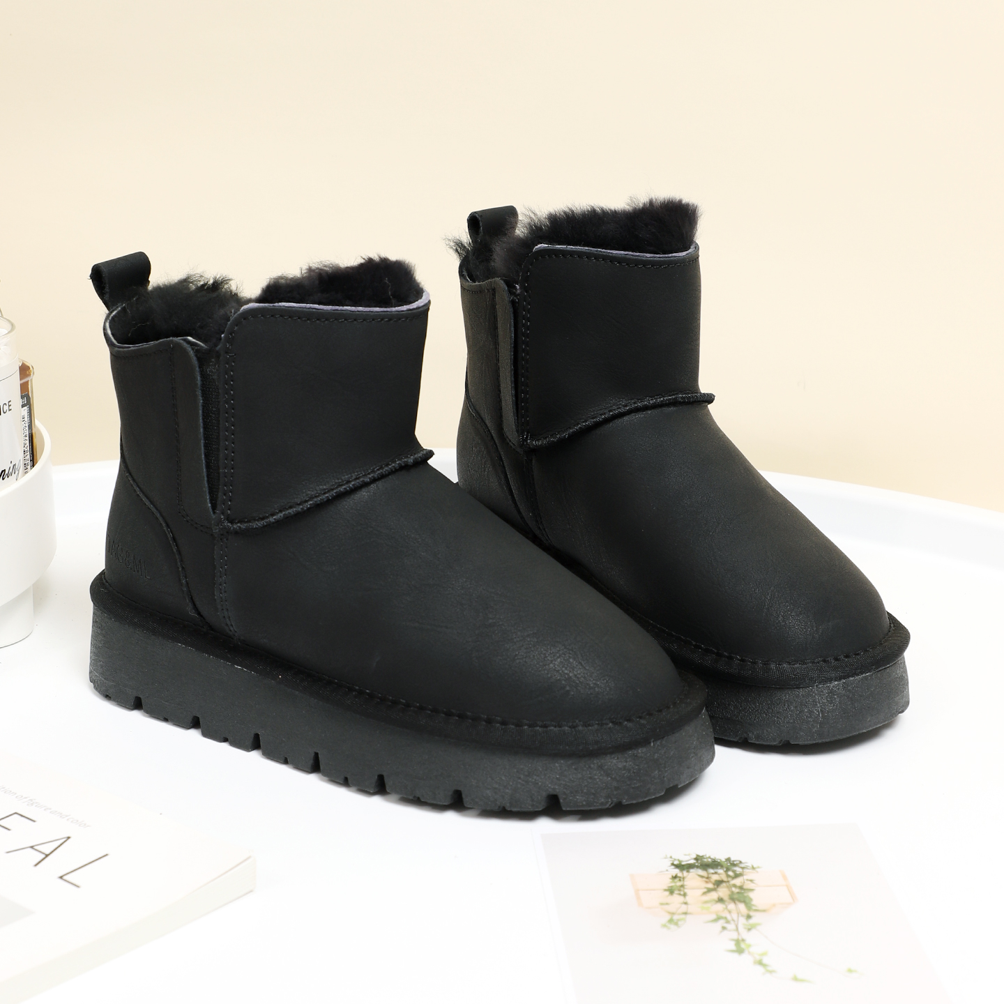保暖套筒短靴加厚棉鞋 真皮毛一体全羊毛防滑雪地靴女2025冬季 新款