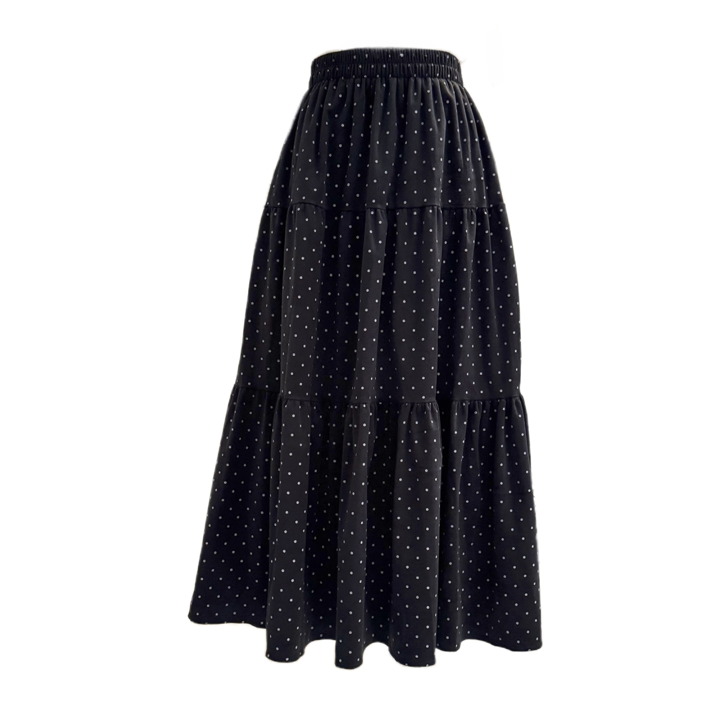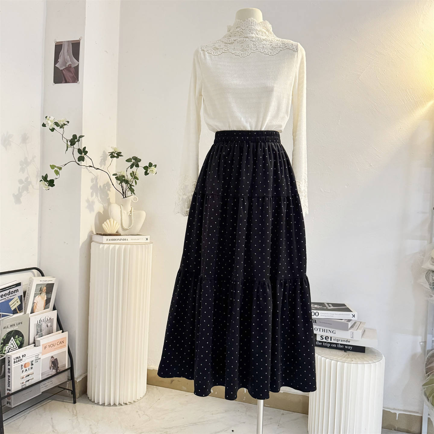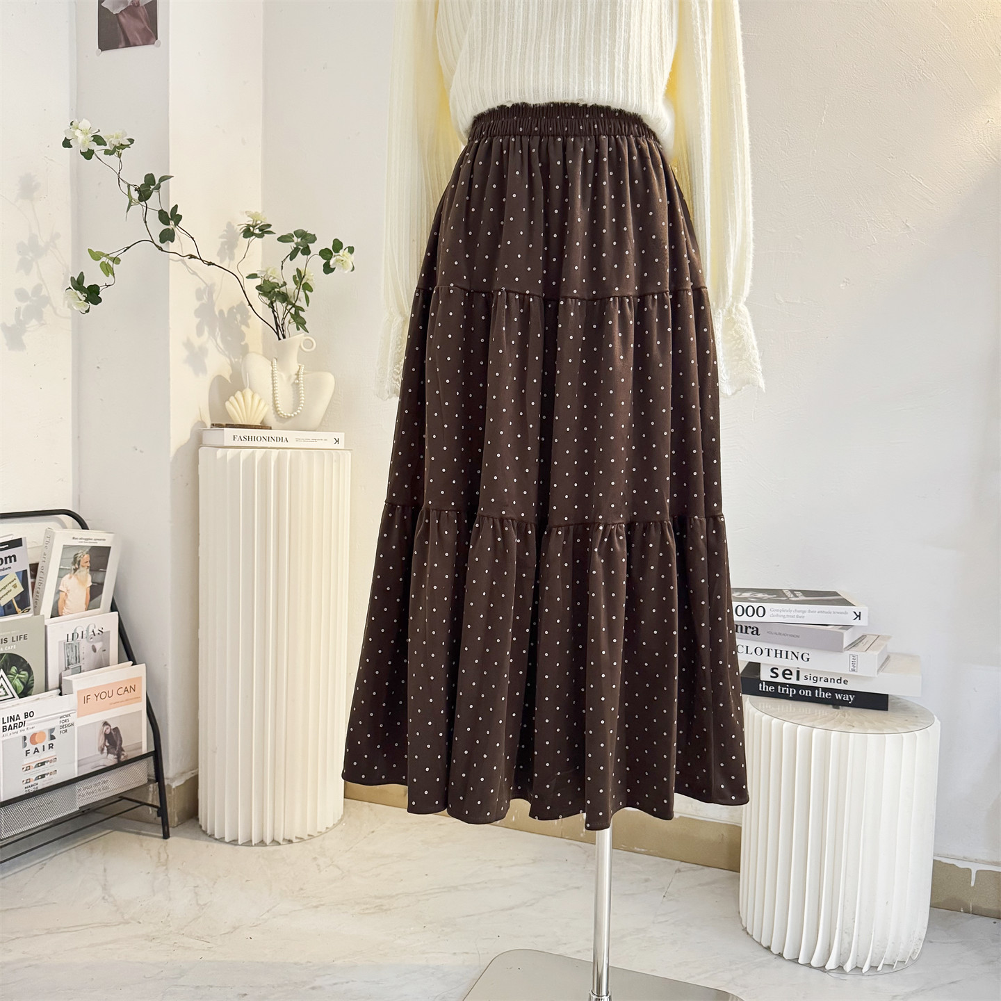 复古黑色鹿皮绒法式 波点半身裙女2025秋冬中长高腰a字蛋糕长裙子