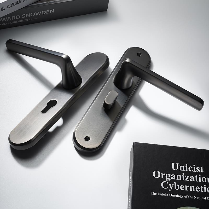 海佩施静音门锁木门卧室卫生间灰黑色简约家用通用型房门单舌锁具