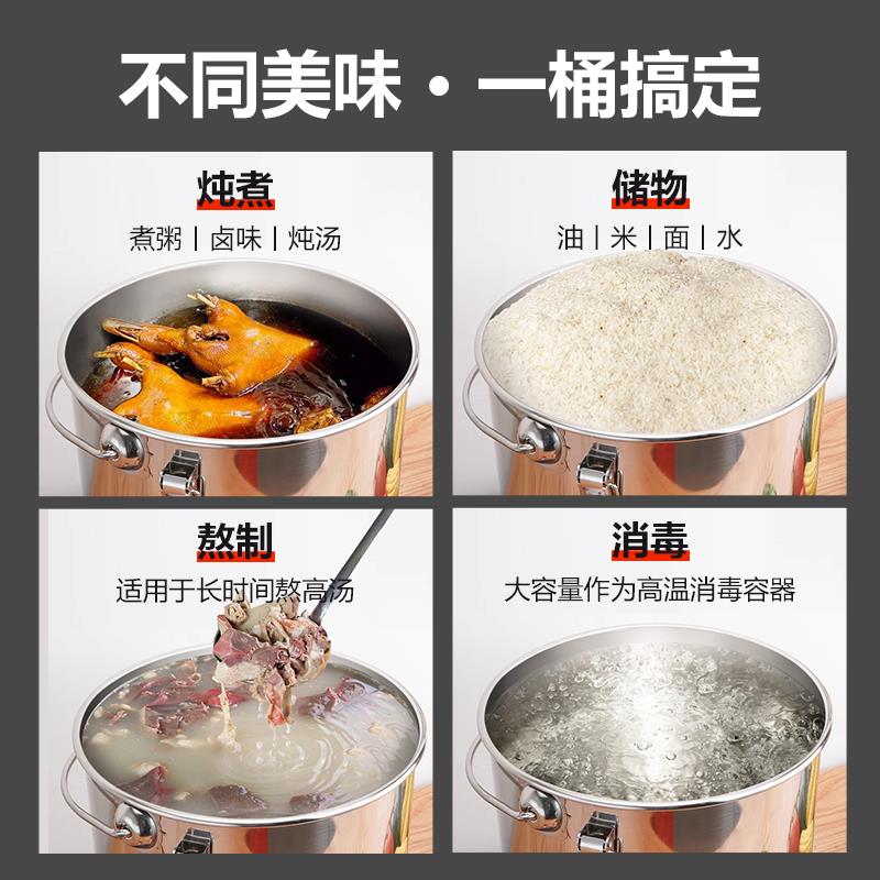304不锈钢桶圆桶手提式 汤桶汤锅商用锅加厚带盖带扣熬电磁炉通用