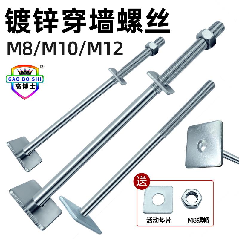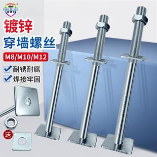 M10 配件M8 M12加长丝杆镀锌方垫 电梯安装 建筑穿墙螺丝4.8级螺栓