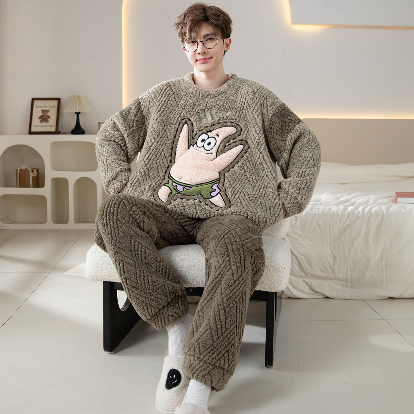 青少年大码 加厚加绒2025年新款 秋冬家居服男生 冬季 珊瑚绒睡衣男款