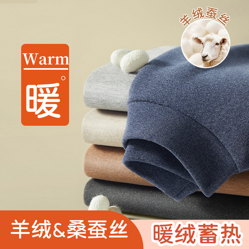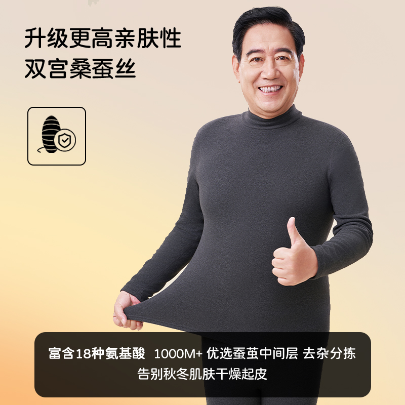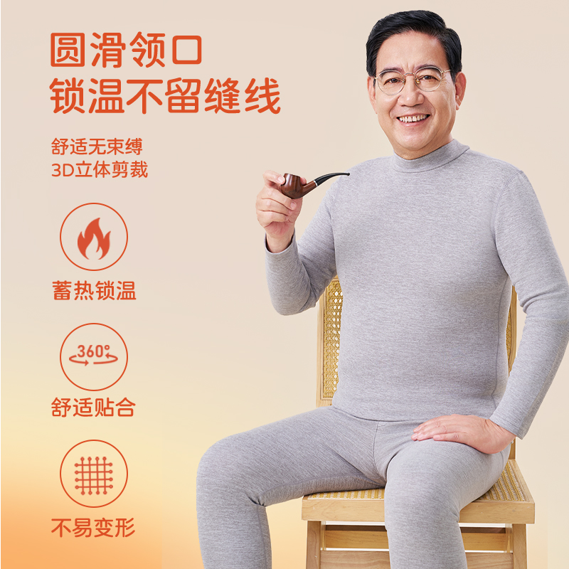 加绒套装 雅鹿羊绒蚕丝无痕保暖内衣男士 中老年半高领发热秋衣秋裤