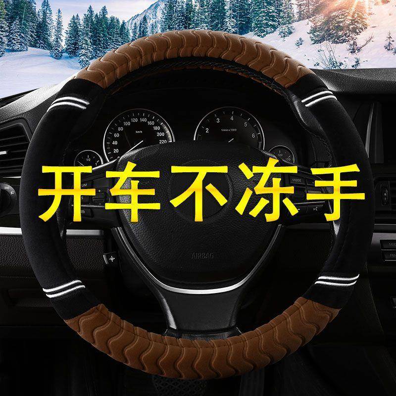 汽车方向盘套三件套冬季 通用型短毛绒汽车把套女可爱d型方向盘套
