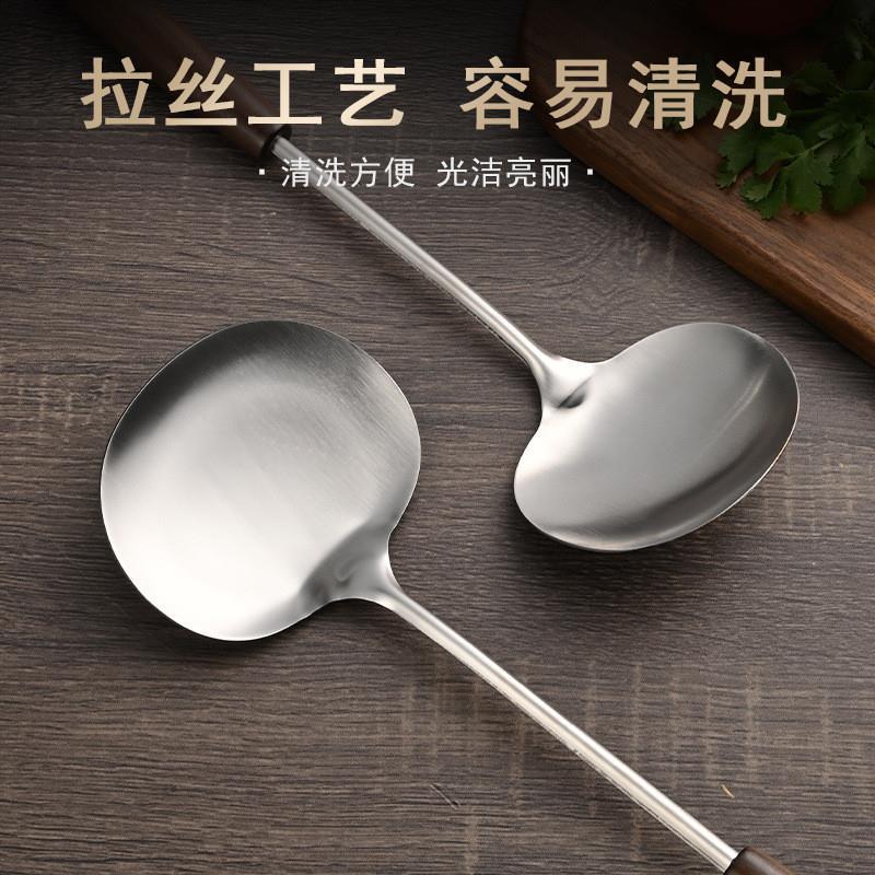 炒菜铲子复古实木不锈钢蘑菇家用长柄勺厨具炒勺 老式 天猫正品