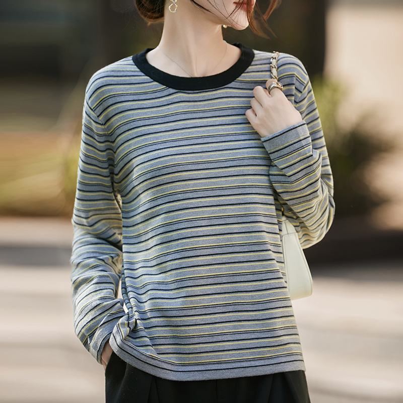 女装 秋冬时尚 春秋洋气上衣大码 女2025新款 显瘦毛衣 条纹针织打底衫