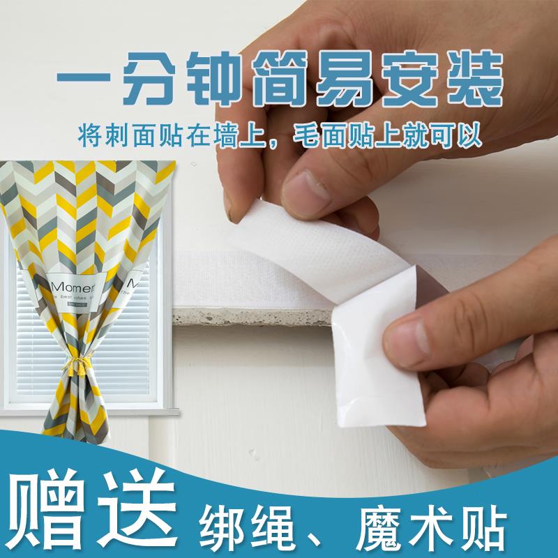 简易魔术贴窗帘北欧风遮光布料粘贴式 飘窗遮阳防晒 卧室免打孔安装