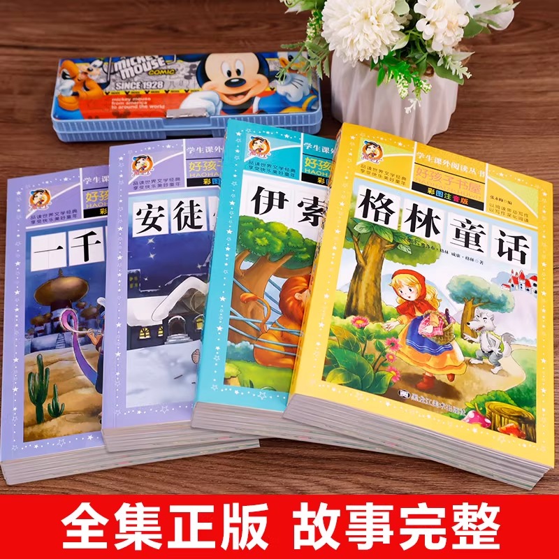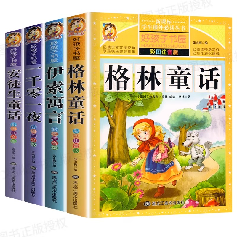 8岁儿童五千年阅读课外宋词经典 一年级二年级必读带拼音6 伊索寓言一千零一夜正版 全套4册童话故事书格林童话安徒生全集彩图注音版