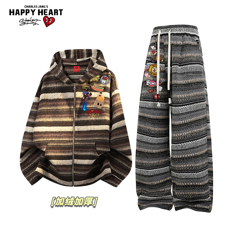 直筒情侣长裤 冬季 子潮 卫衣男女针织衫 查尔斯桃心休闲加绒加厚开衫