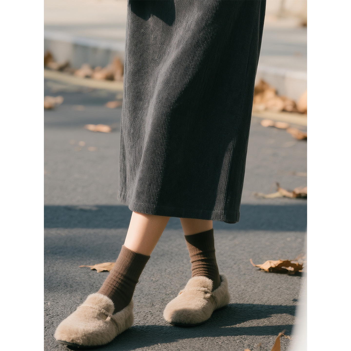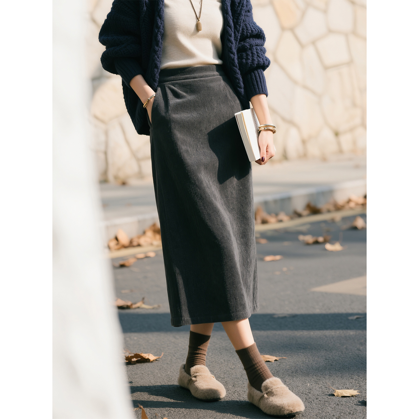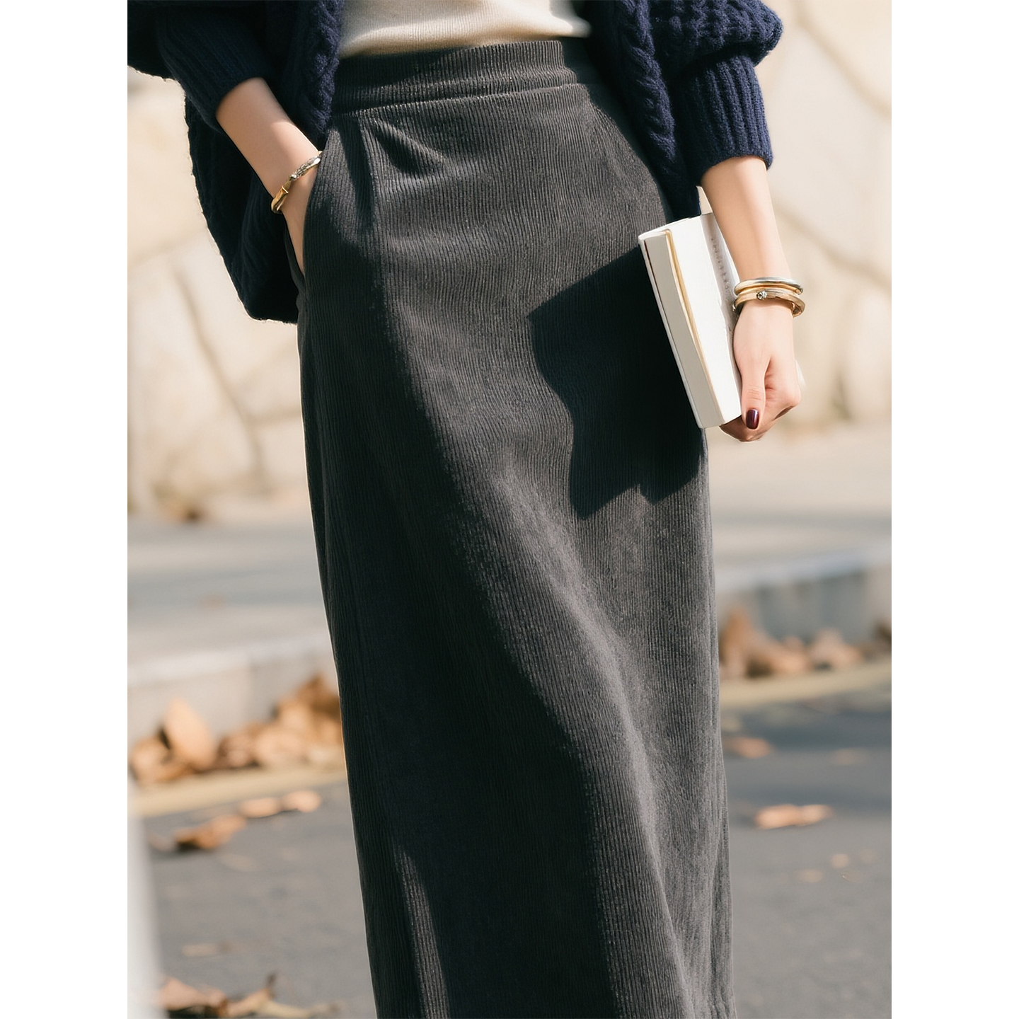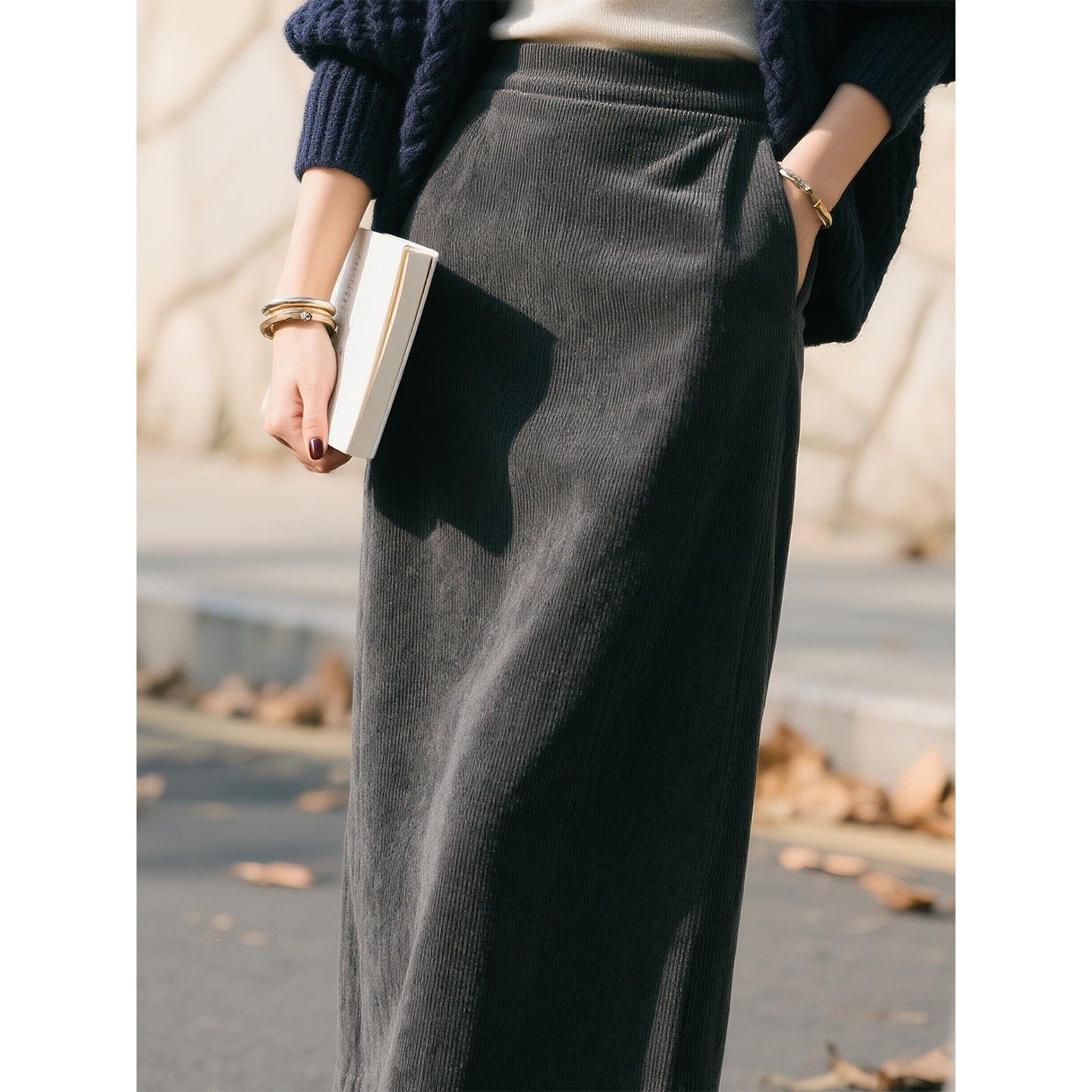 咖啡色高腰灯芯绒半身裙女休闲2025秋季 洋气百搭开叉A字长裙 时尚