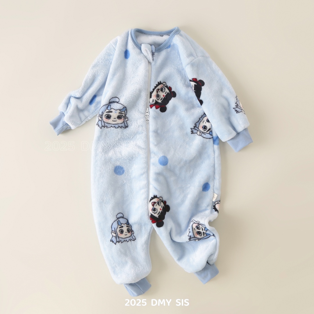 儿童连体睡衣秋冬季 孩防踢着凉 法兰绒女宝宝睡袋男童珊瑚绒加厚款
