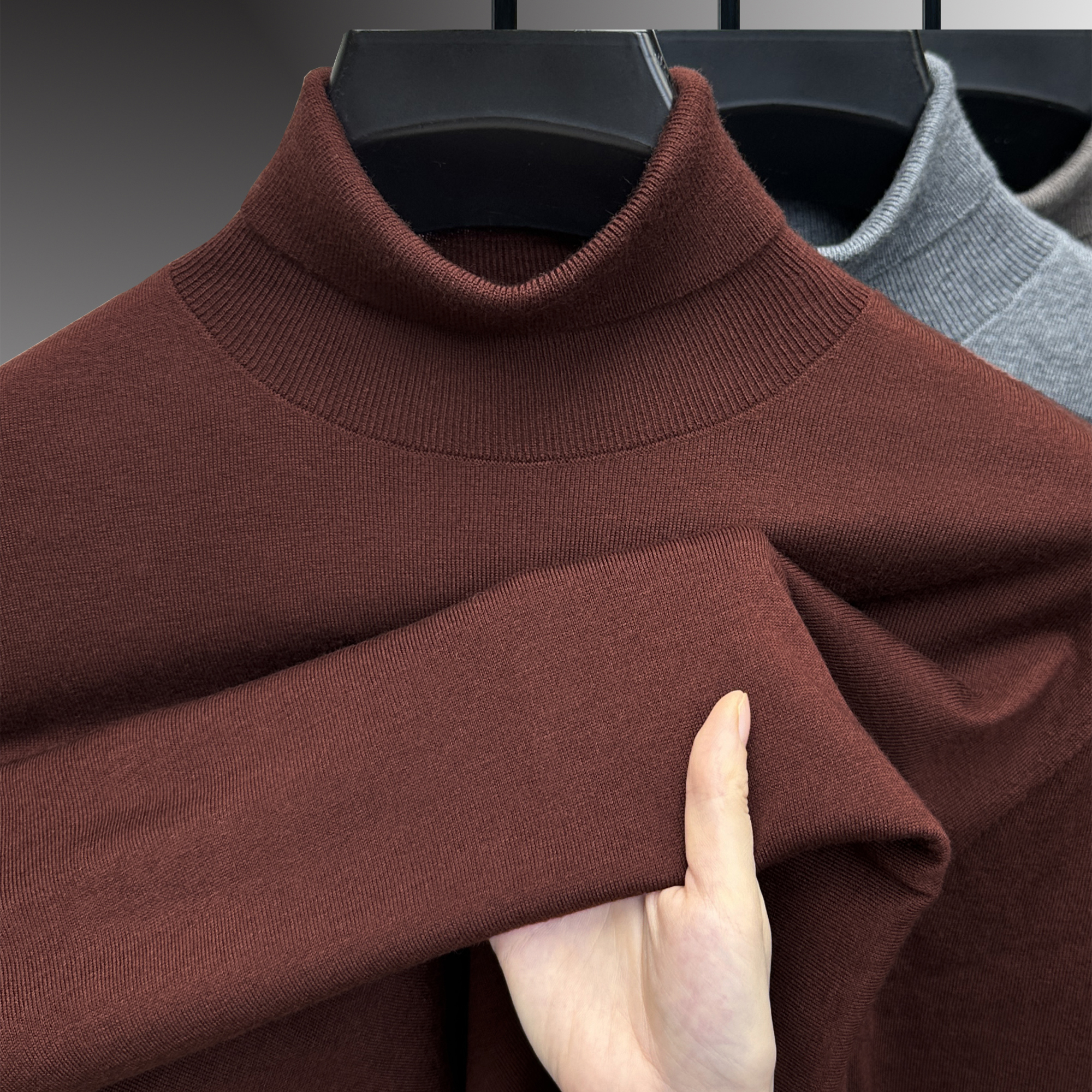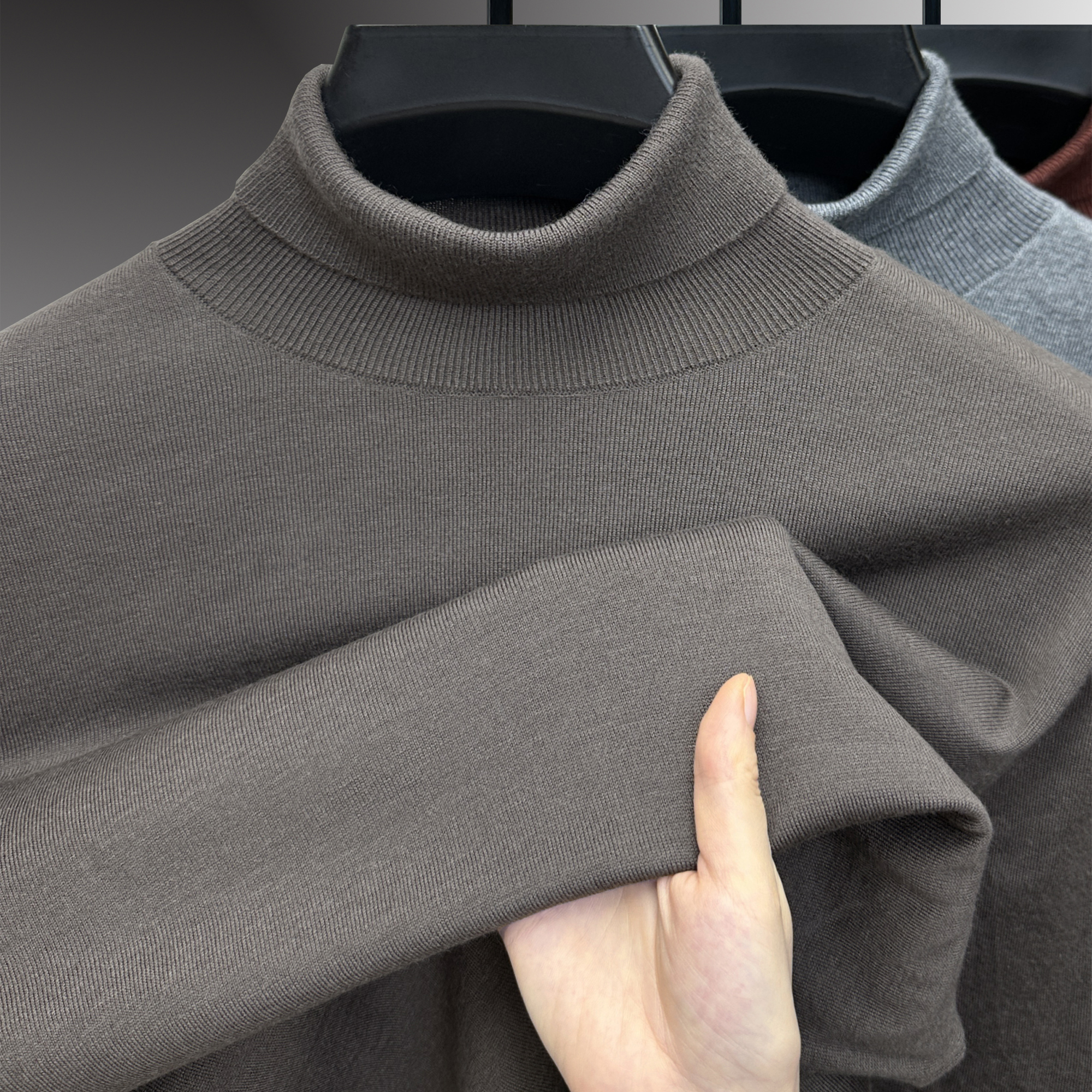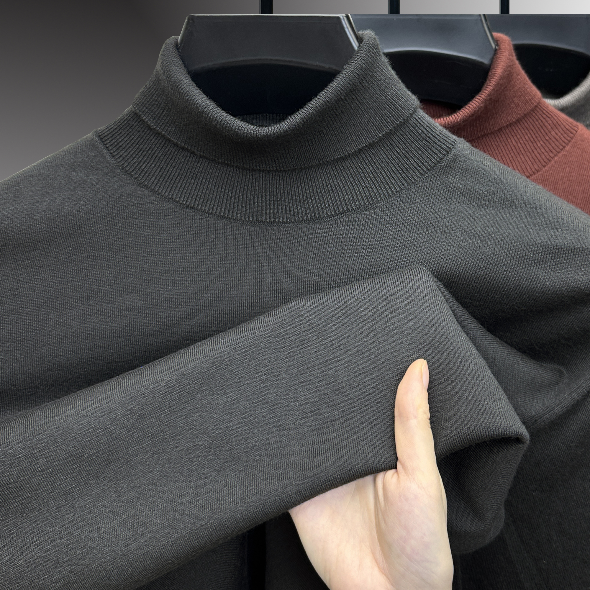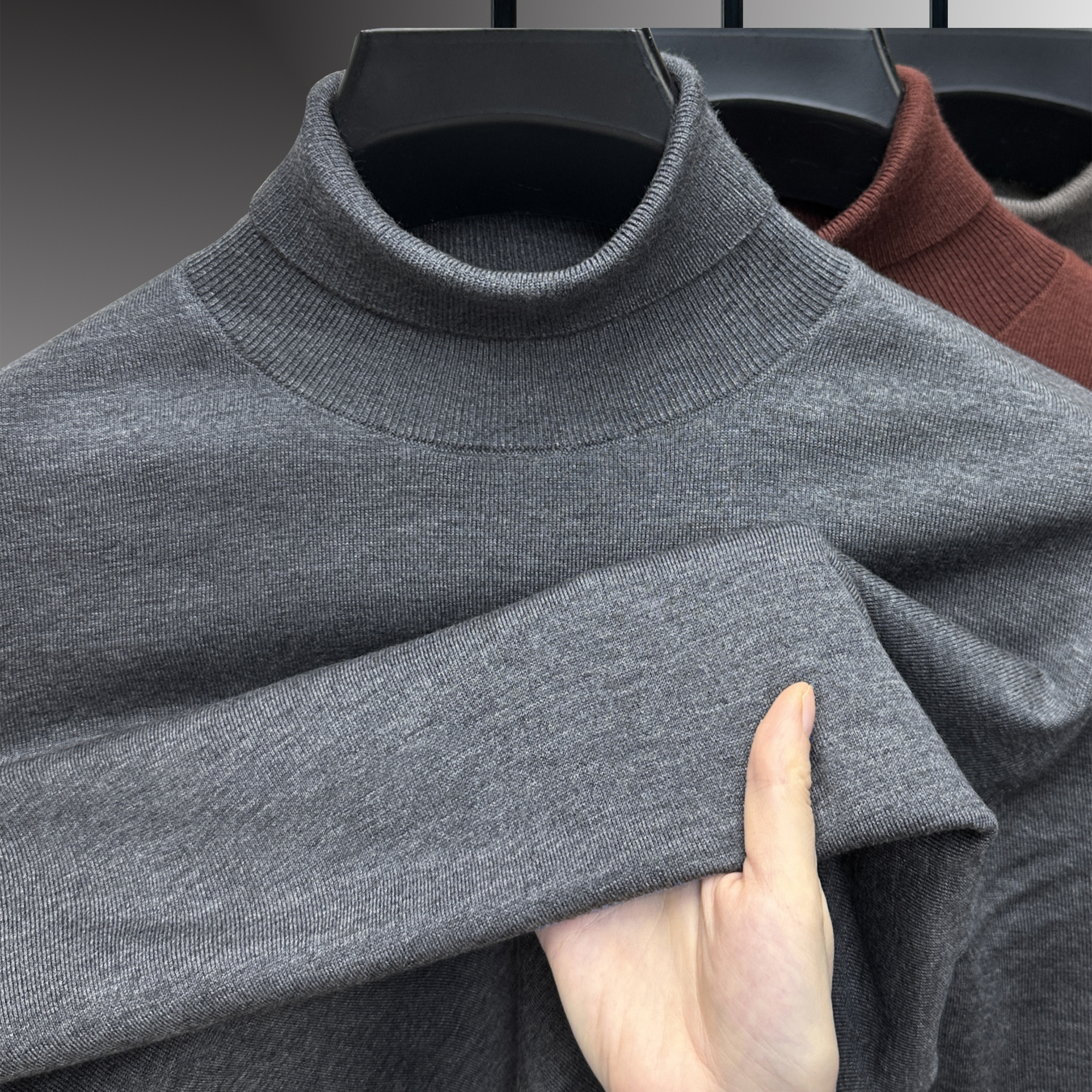 打底衫 t恤男2025薄款 黑色百搭高领毛衣含羊毛纯色内搭 长袖 针织衫