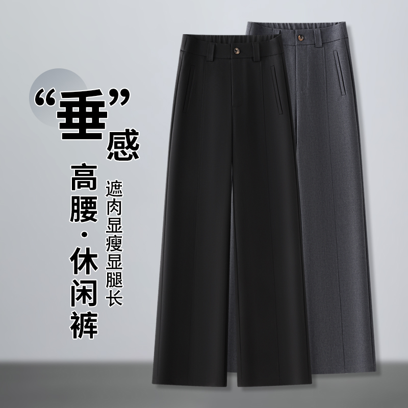 女春秋新款 休闲直筒慵懒松弛感裤 高腰垂感窄版 裤 子 西装 黑色阔腿裤