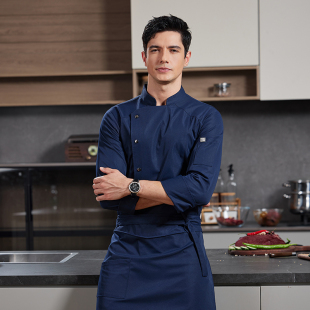 高档厨师服长袖 工作服女 男厨房西餐厅酒店饭店食堂高级定制秋冬装