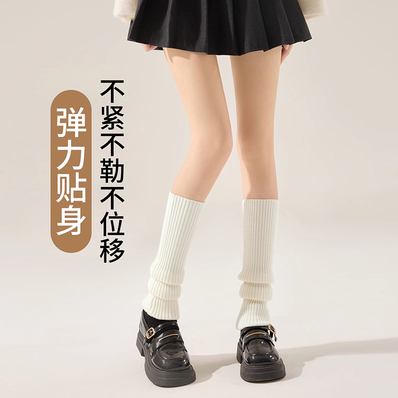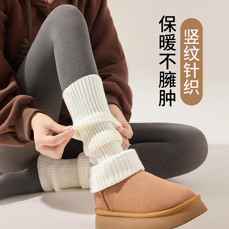 针织袜套袜子女小腿袜JK雪地靴子腿套秋冬保暖加厚长筒堆堆袜黑色