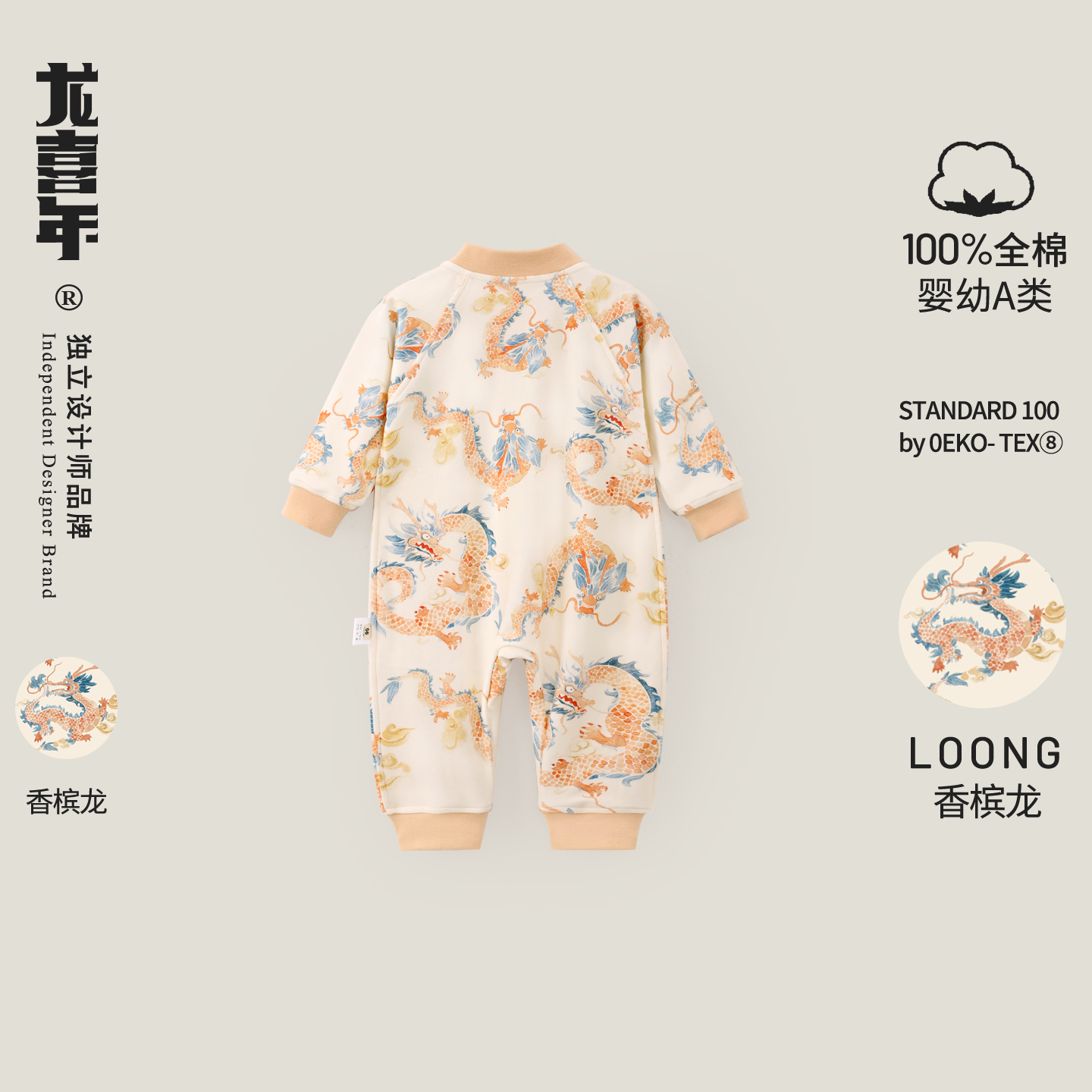 龙喜年满月宝宝服男女宝新中式 国风纯棉抓周百天百日宴礼服连体秋