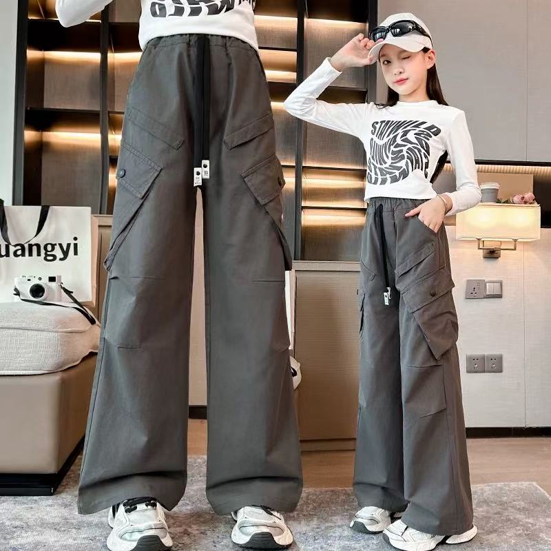 新款 2025秋季 中大童潮酷加绒阔腿裤 儿童秋装 子 女童工装 百搭长裤 裤