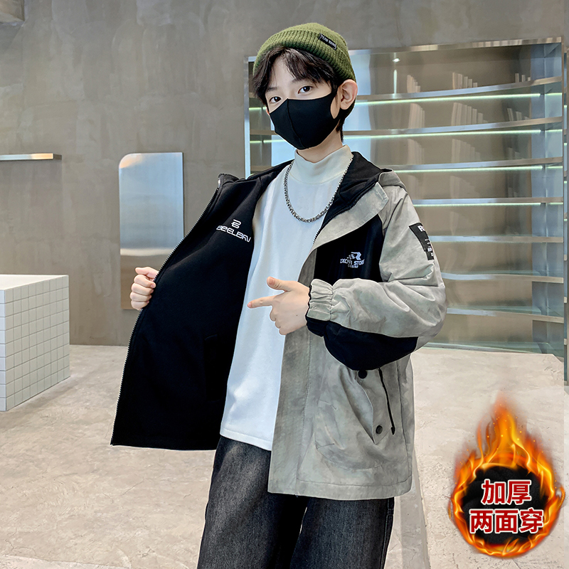 加厚冲锋衣男孩冬装 儿童装 中大童加绒冬季 2025新款 男童外套秋冬款