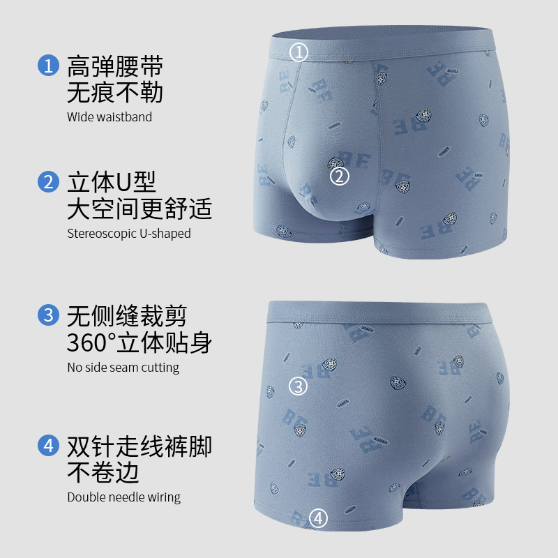 纯棉男士 四角裤 内裤 平角裤 衩子 男生青少年宽松透气加肥加大码 新款