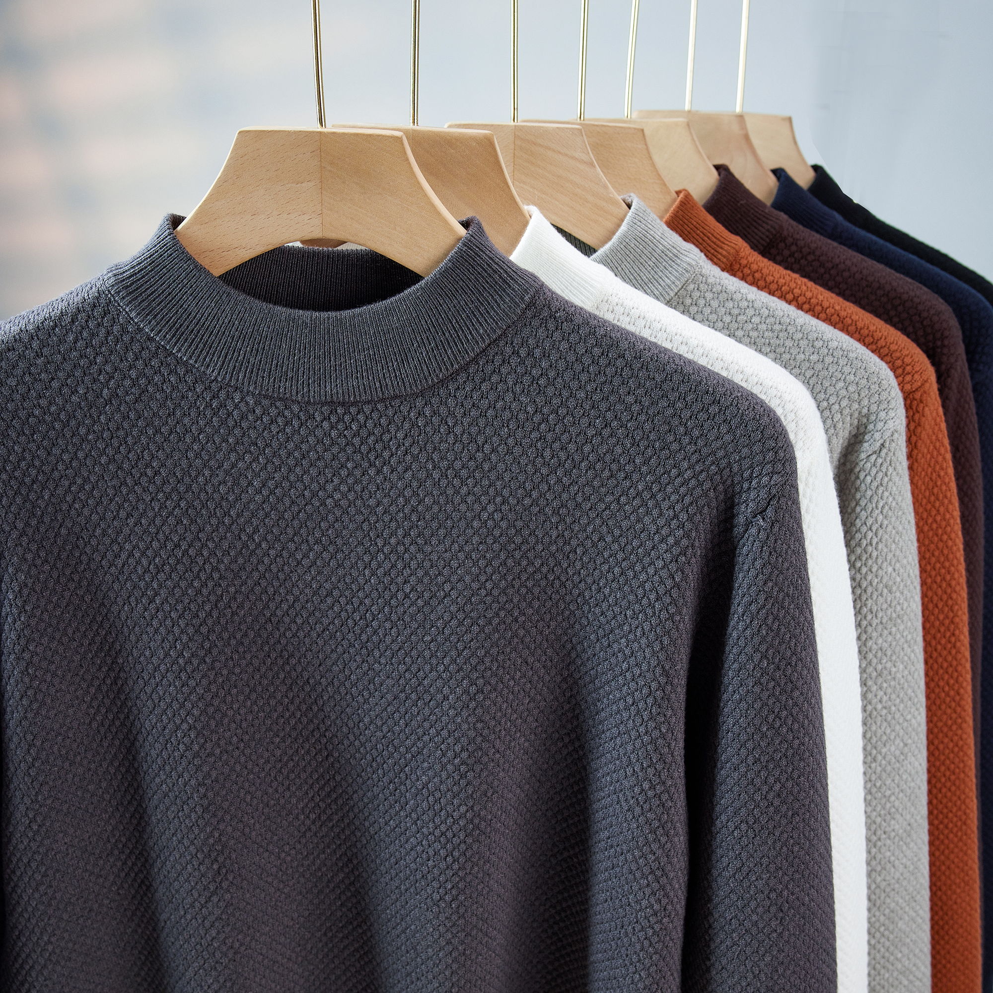 polo卫衣 早秋穿搭美式 灰色亨利领长袖 毛衣男慵懒高级感内搭针织衫