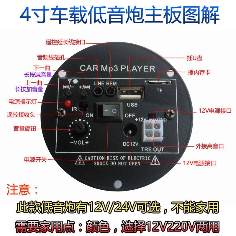 车载低音炮12v24v重低音汽车改装 大音量音响12寸家用无线蓝牙音箱