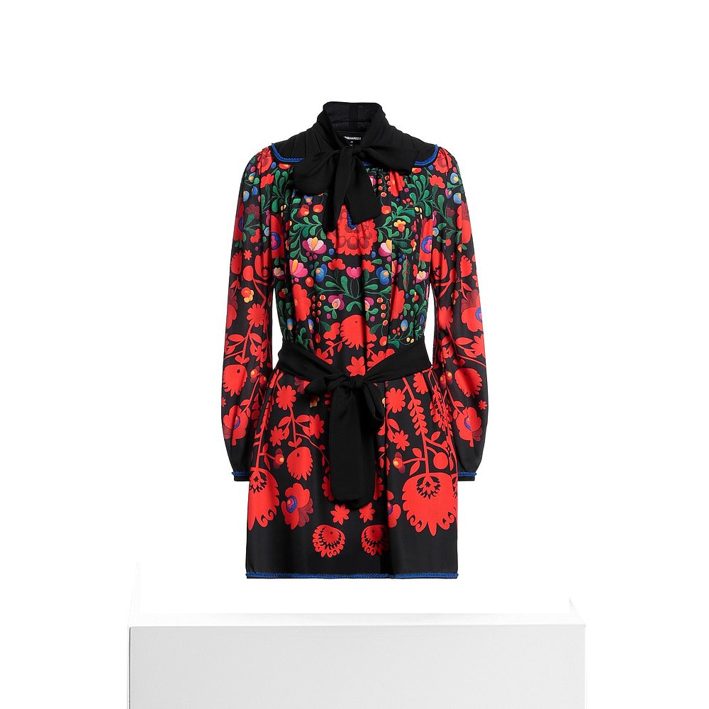 长袖 通勤系带圆领爆款 连身裙 新款 秋水伊人百搭碎花连衣裙2025秋装