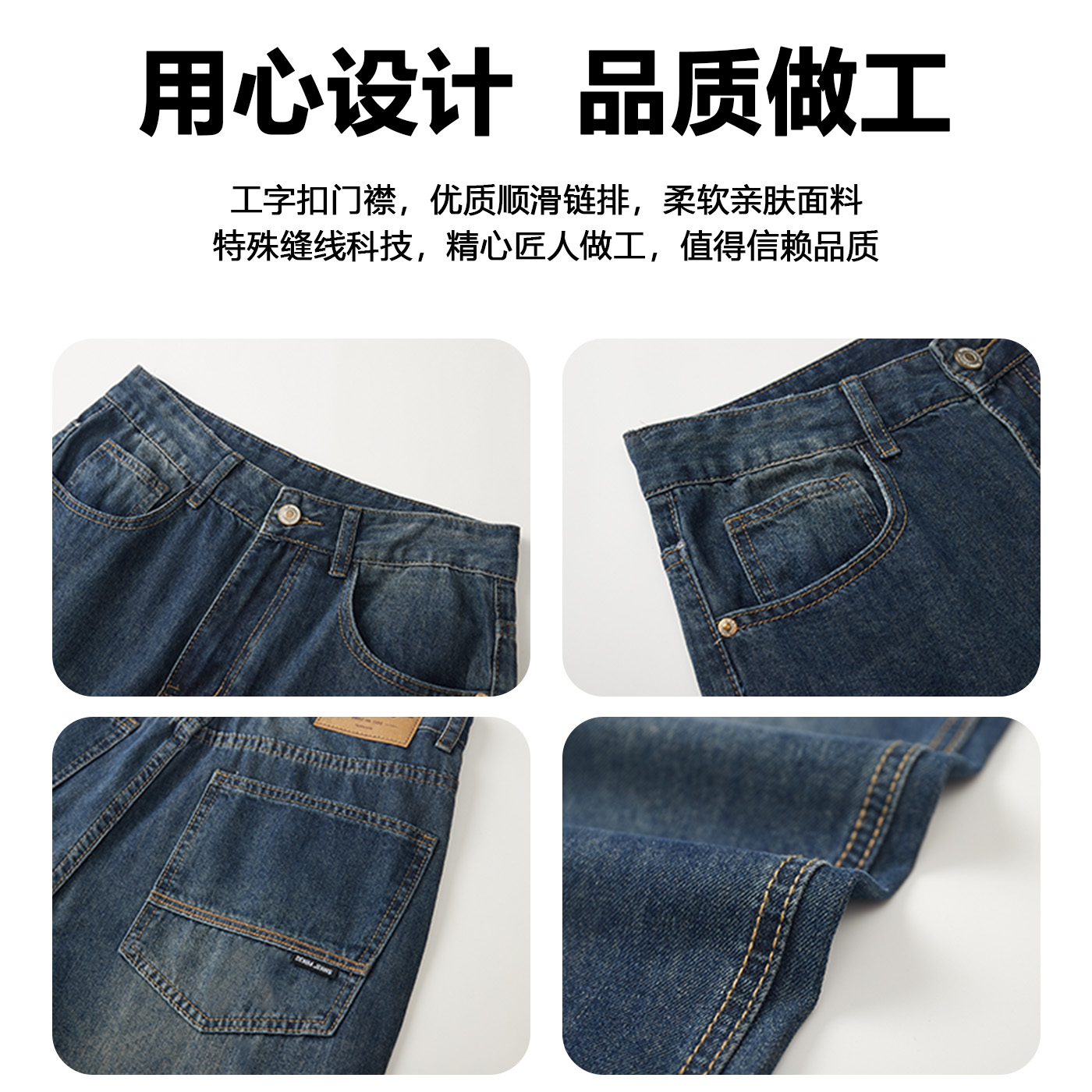 男士 ERQ901宽松直筒牛仔裤 男商务休闲全棉无弹复古美式