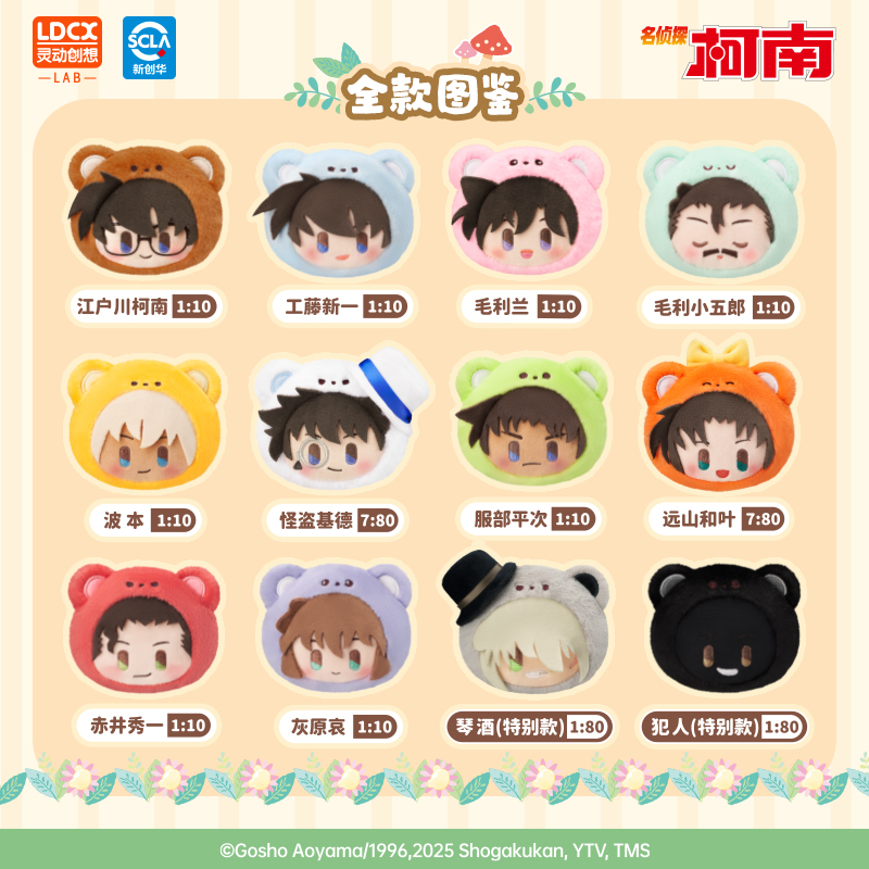 正版 名侦探柯南熊熊侦探毛绒大头挂件盲盒新一毛利兰玩偶官方周边