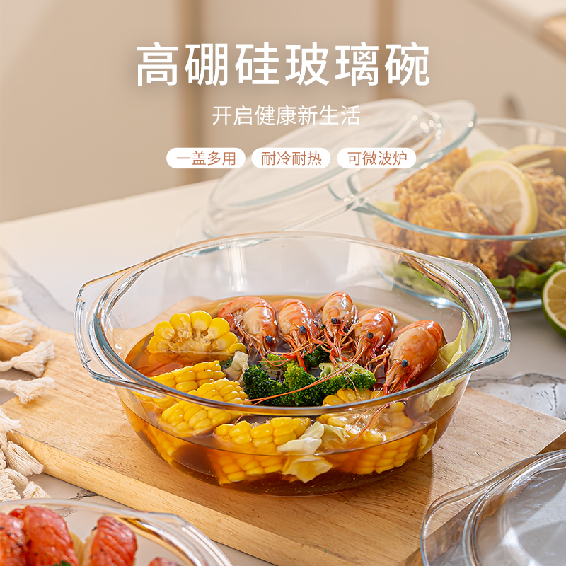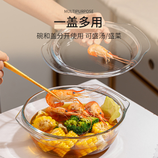 微波炉专用 碗带盖家用汤碗耐高温热器皿泡面蒸盒蒸蛋大号玻璃碗
