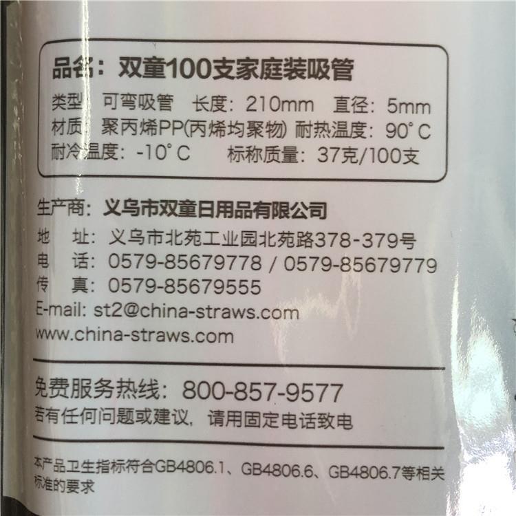 PP彩条透明饮料吸管吸水管子21CM 双童100支吸管弯头家庭装 包邮
