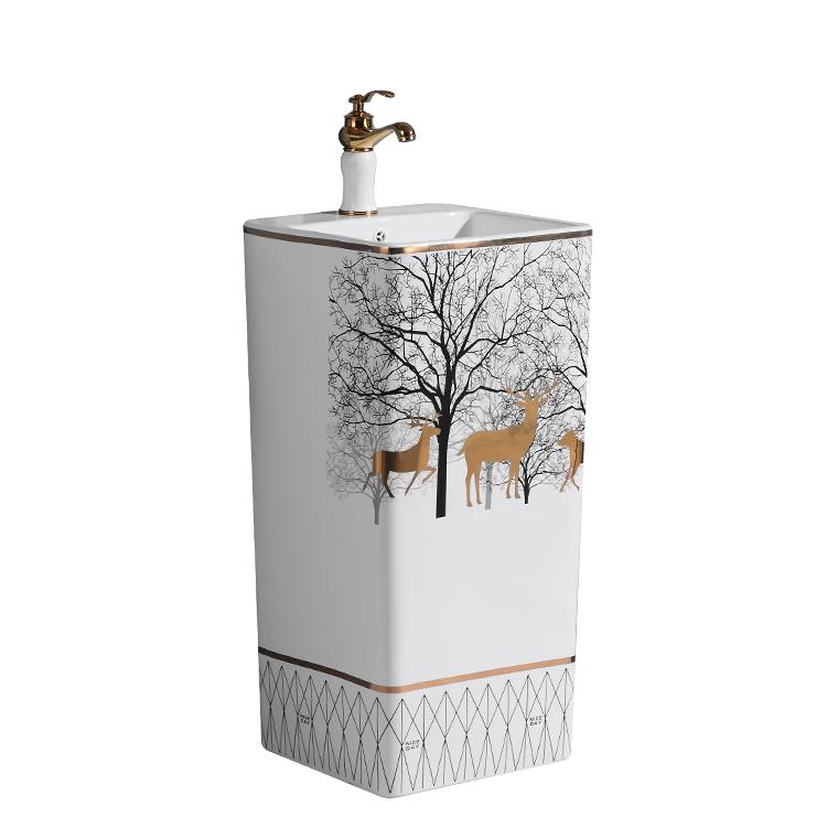 阳台陶瓷立柱盆一体落地式 洗手台盆卫生间艺术花园户外洗脸池庭院