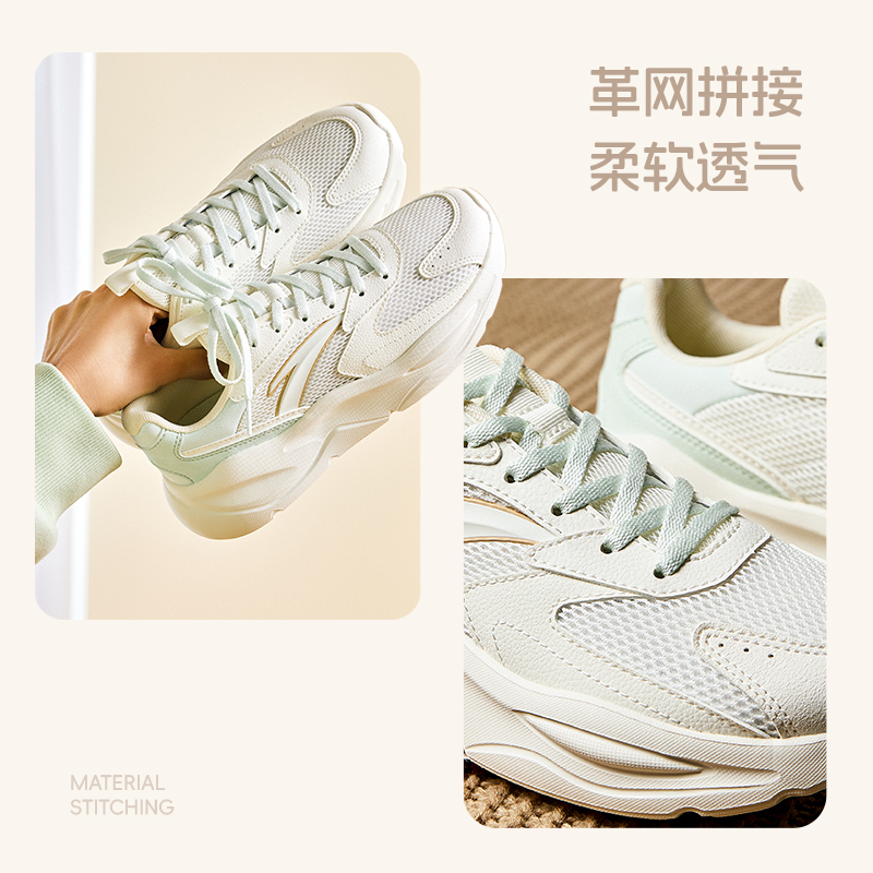 休闲鞋 安踏漫步 舒适轻便软底运动鞋 女款 轻质缓震网面皮面跑步鞋