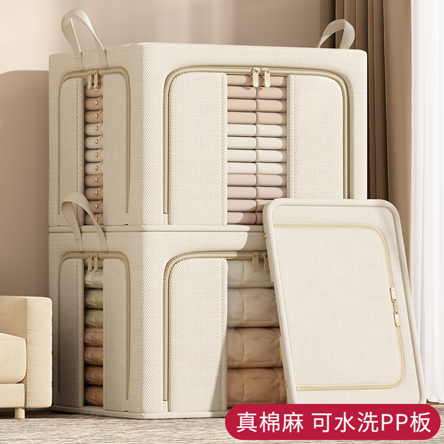 天山棉麻家用折叠衣物收纳整理箱大容量可水洗带钢架多功能储物箱