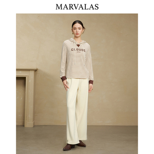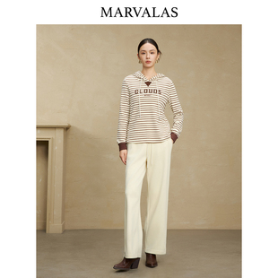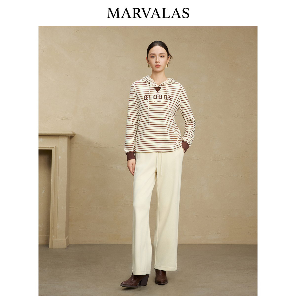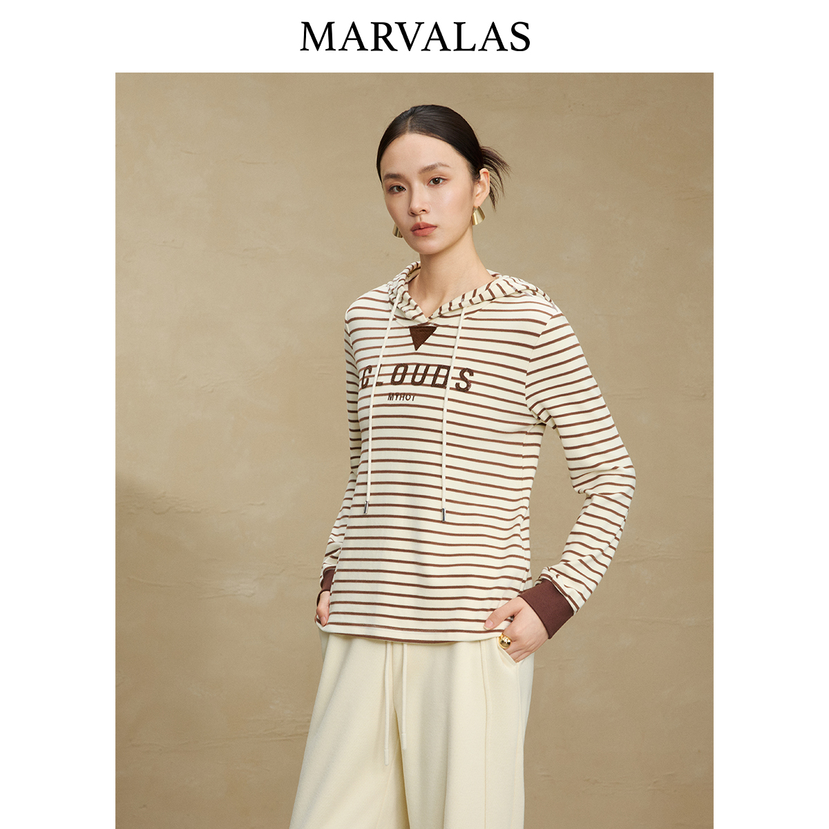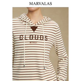 时尚 刺绣简约百搭长袖 chic上衣 新款 曼德诗条纹连帽卫衣女2025冬季