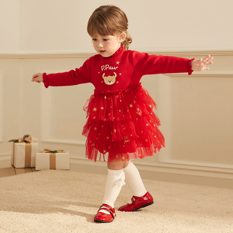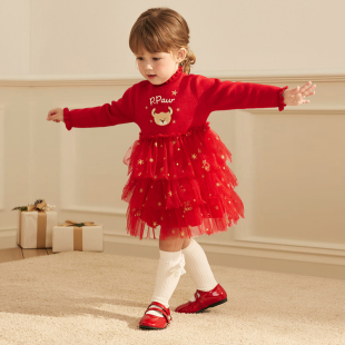 新款 25年冬季 PawinPaw卡通小熊童装 女宝宝连衣裙甜美可爱 圣诞