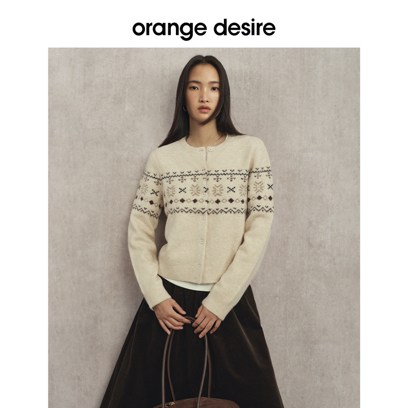 orange 冬日绘本 desire费尔岛提花圆领针织衫 预售免定金
