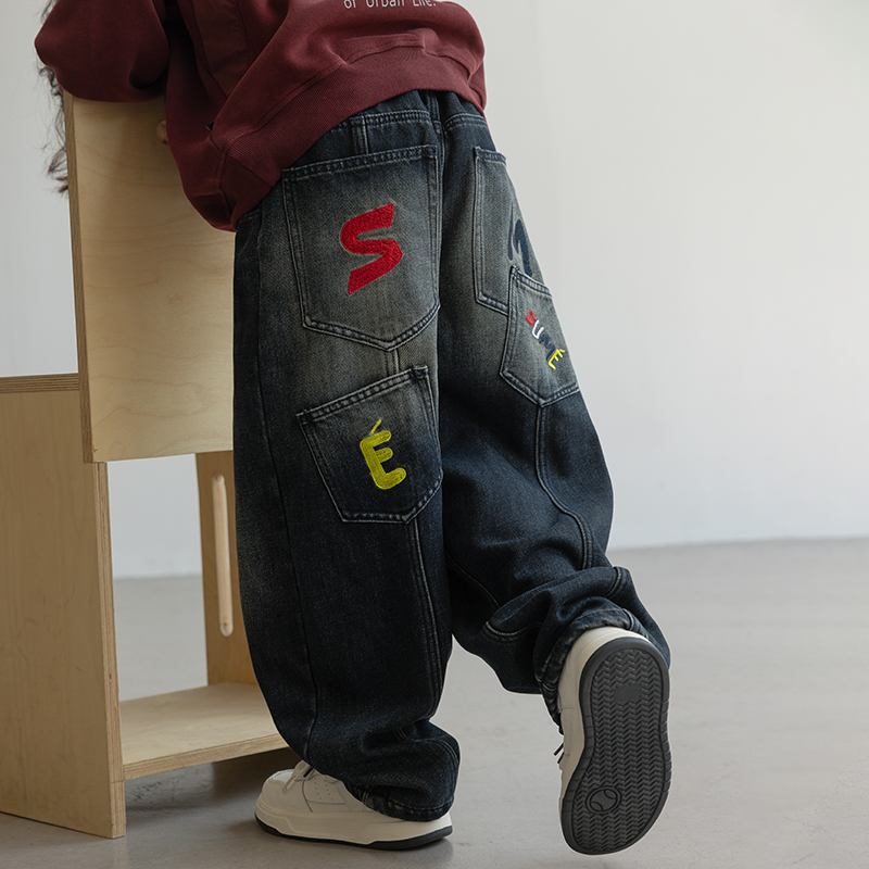 秋冬款 子大男孩冬装 2025新款 一体绒加厚裤 儿童冬季 男童加绒牛仔裤