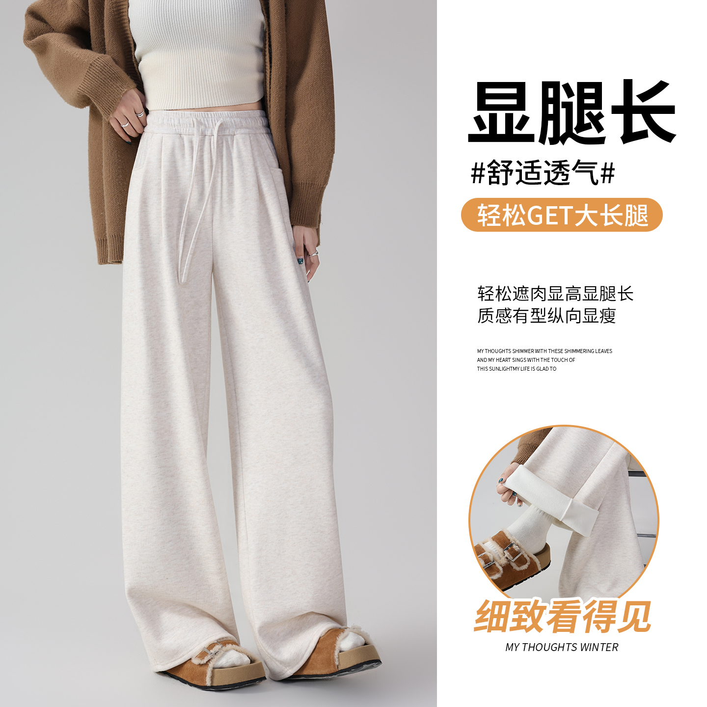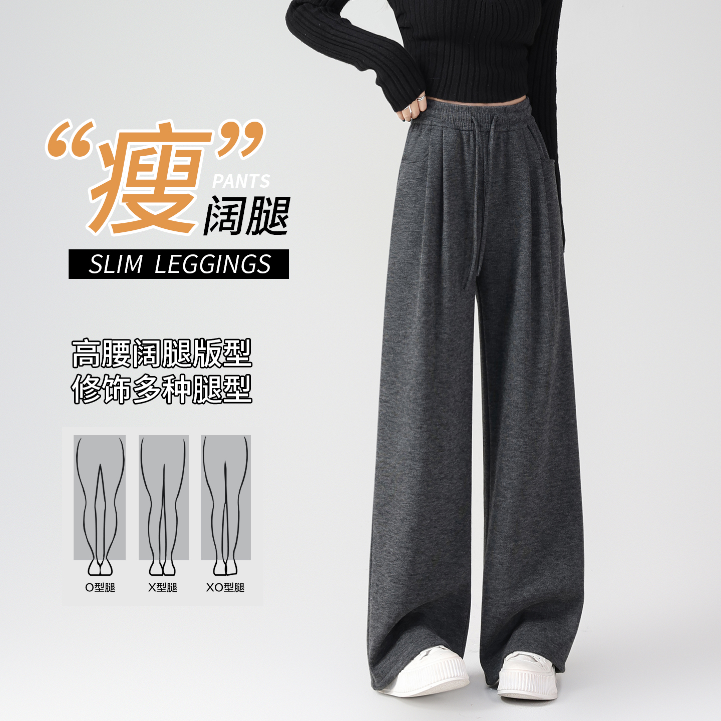 慵懒风针织休闲裤 黑色糯米裤 2025新款 垂坠感软糯阔腿裤 子 女秋冬季