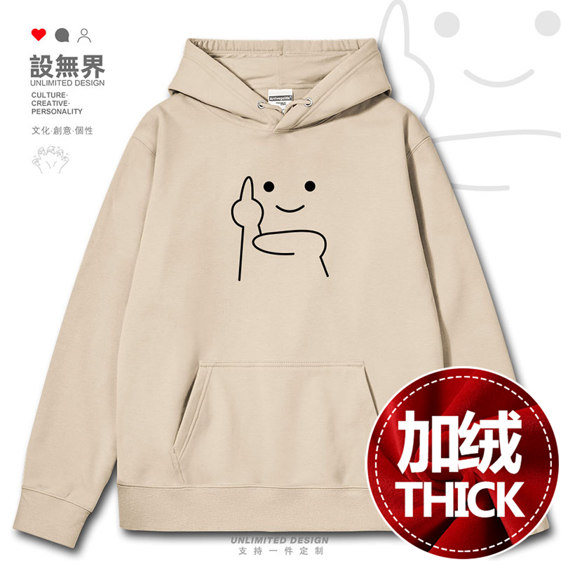 文明手势涂鸦线条小人趣味简约个性 无界 连帽卫衣男女春秋0015设