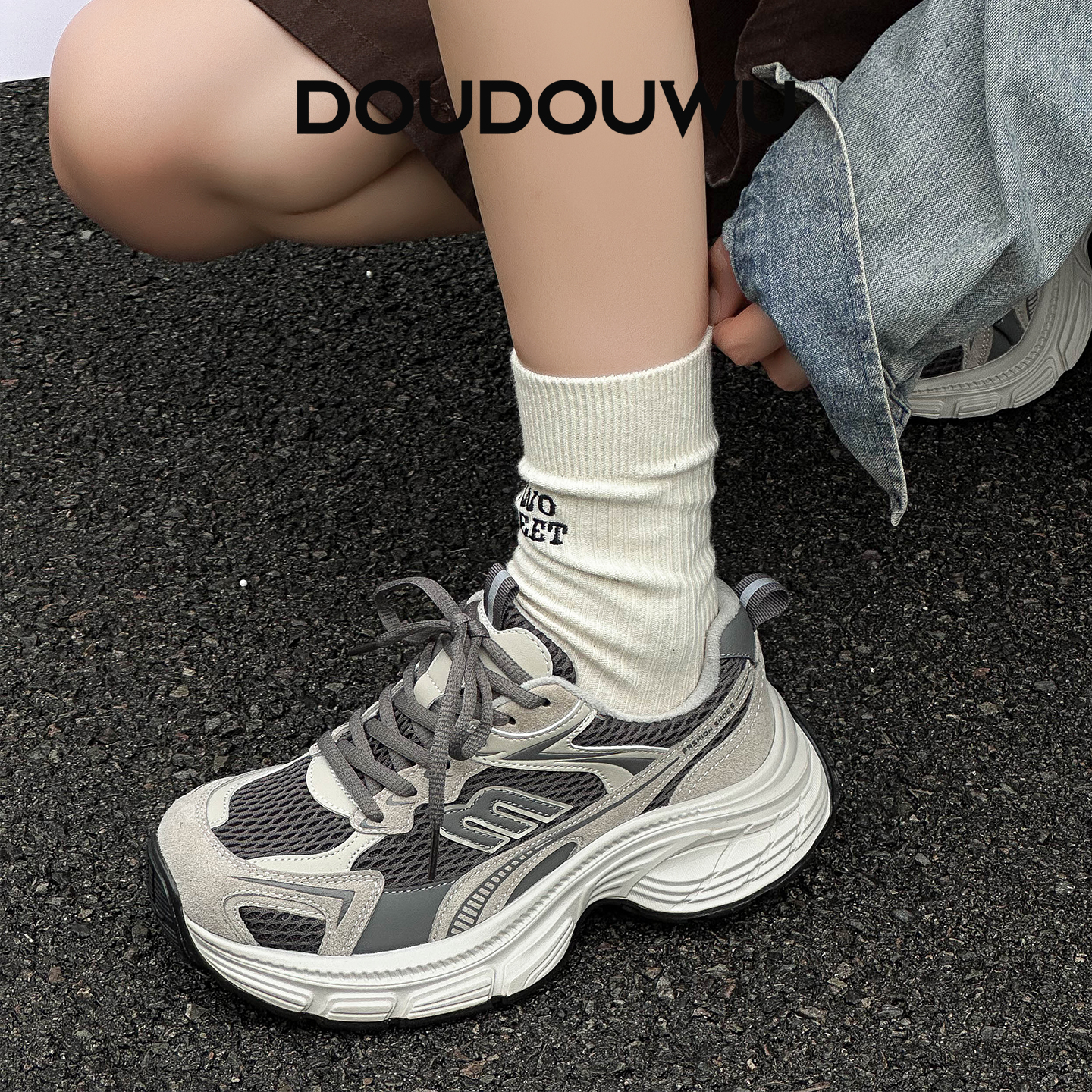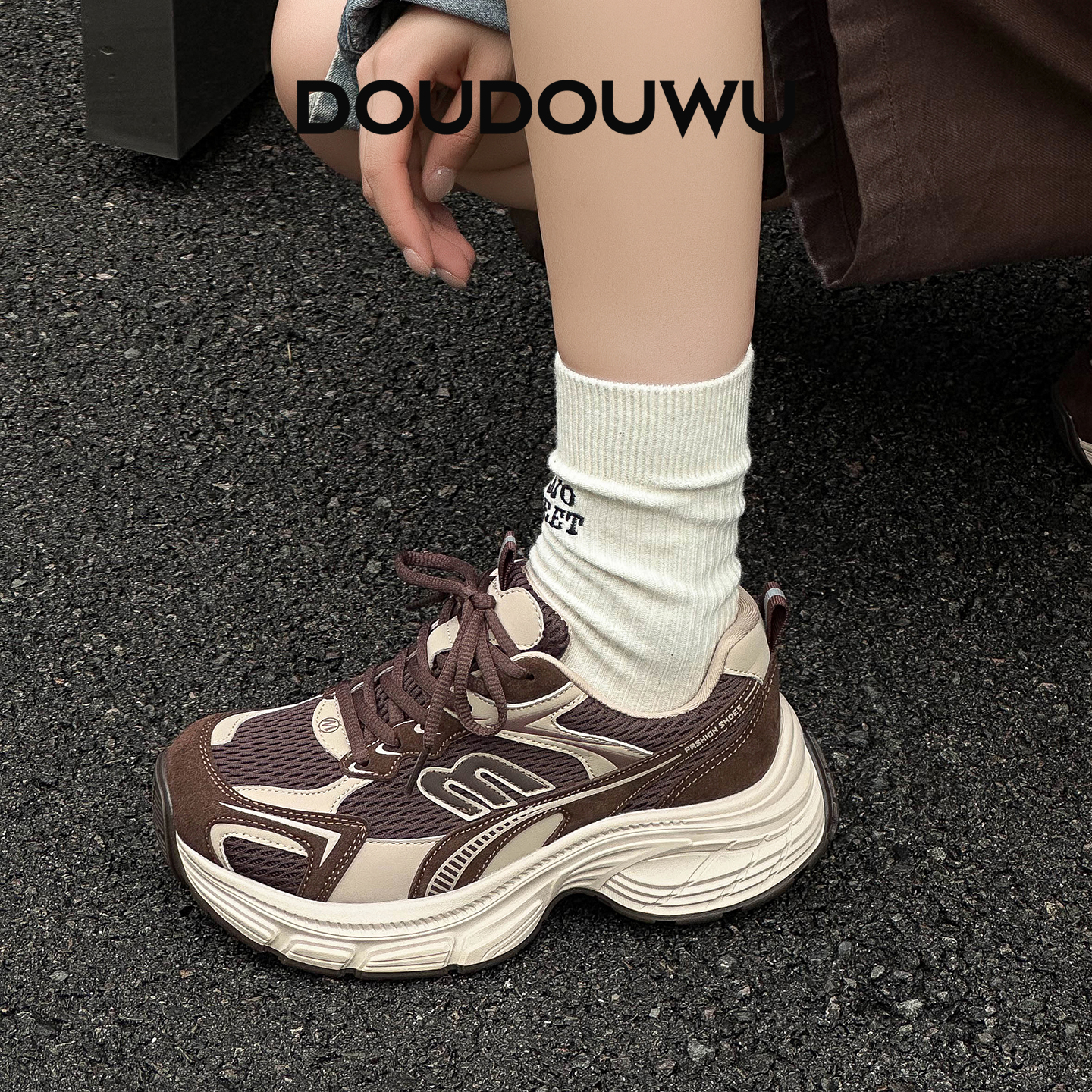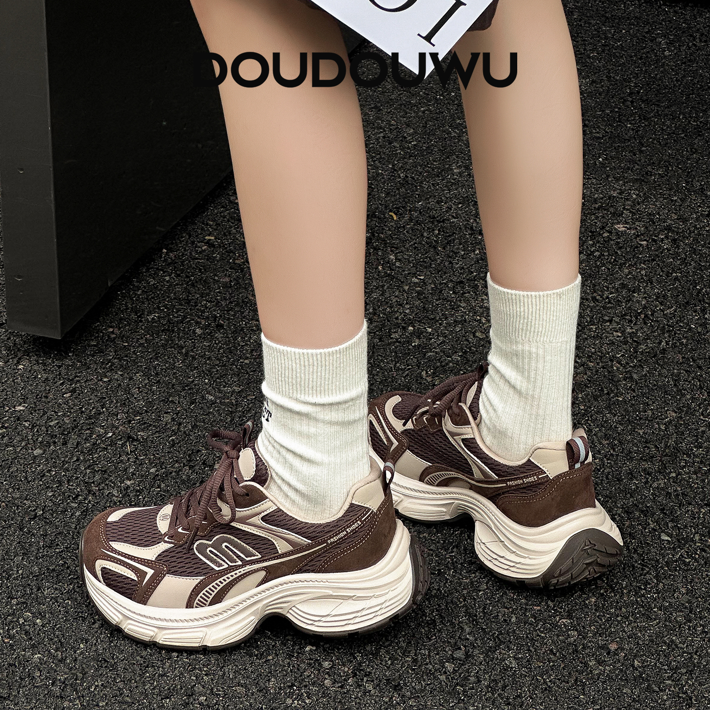 潮运动休闲百搭系带松糕女鞋 韩版 女增高2025新款 豆豆屋厚底老爹鞋