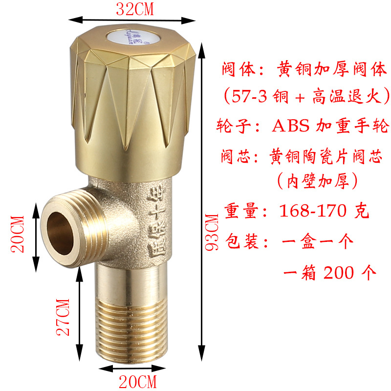 4分加长加厚全铜角阀纯铜热水器马桶三角阀铜角阀一进一出冷热水