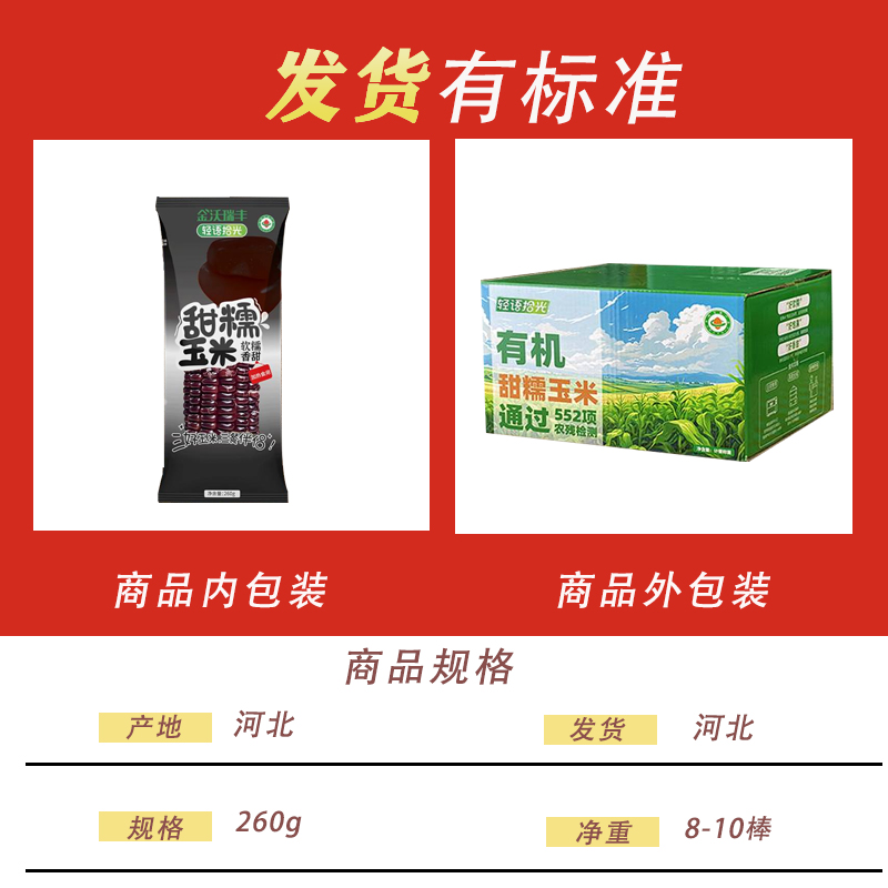 有机紫黑玉米糯米新鲜甜黏糯玉米棒真空装 袋非东北粘苞米即食 包装